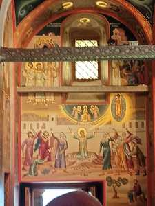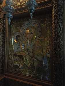 Группа остановилась на ночлег в русском Пантелеимоновом монастыре, где утром они приняли участие в Литургии и приложились к мощам святого Пантелеимона и другим святыням монастыря.