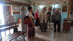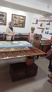 Затем, под руководством духовника Воскресной школы, иерея Ильи Мелякова, дети с преподавателями и родителями отправились в гости во Владимирский Собор города Бишкек. Там они посетили музей истории епархии, ознакомились со святынями храма святой равноапостольной княгини Ольги и собора святого равноапостольного князя Владимира. В рамках мероприятия была проведена православная викторина по святым иконам, в которой дети с энтузиазмом отвечали на вопросы экскурсовода.