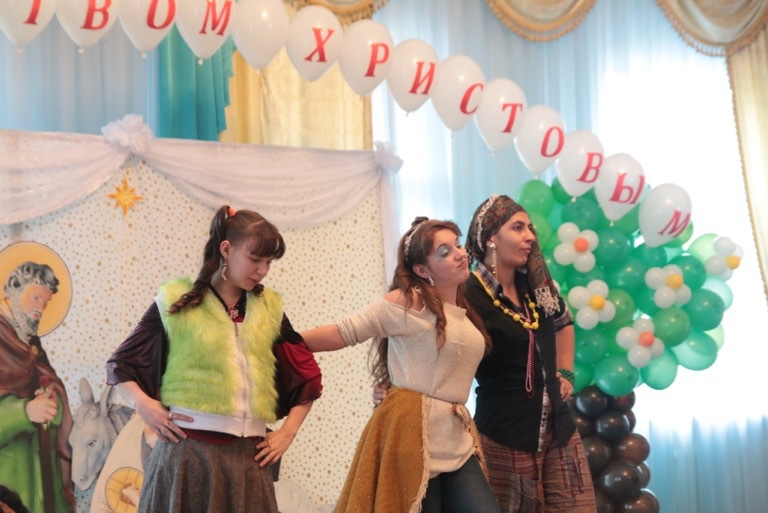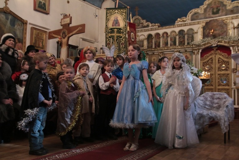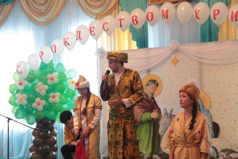В день Рождества Христова, 7 января, в Свято-Воскресенском кафедральном соборе города Бишкека после поздней Божественной литургии воспитанники школы святого равноапостольного великого князя Владимира представили сказку «Снежная королева».