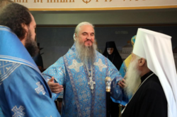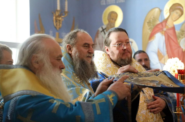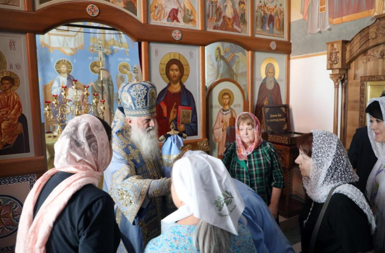 По завершении богослужения было совершено славление праздника Успения Пресвятой Богородицы. В архипастырском слове митрополит Викентий напомнил об истории явления иконы Божией Матери «Светописанная» и подчеркнул:
