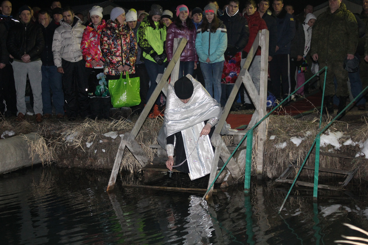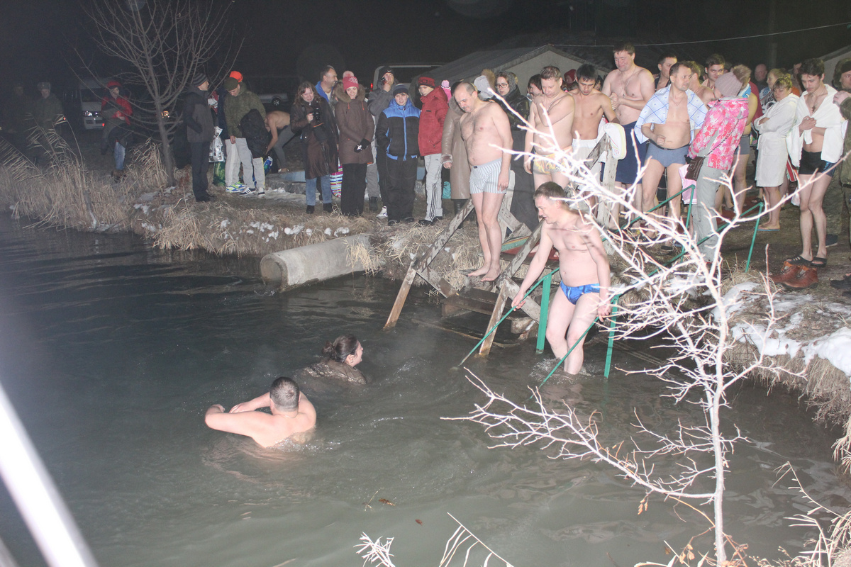 В этот день вместе с авиаторами в святую воду окунались и военнослужащие, прибывшие с проверкой в составе военной инспекции Министерства обороны РФ, а также командующий 2 К ВВС и ПВО генерал-лейтенант Виктор Севостьянов и начальник отдела кадров 2 К ВВС и ПВО полковник Андрей Петроченко. И делали они это, кстати, тоже очень уверенно. Видно было, что и многие другие в крещенских купаниях участвовали далеко не первый раз. Сам иерей Евгений, купальщик со стажем, в этом пруду окунулся и укрепился духом в пятый раз. А для кого-то такое значимое событие в жизни произошло впервые.