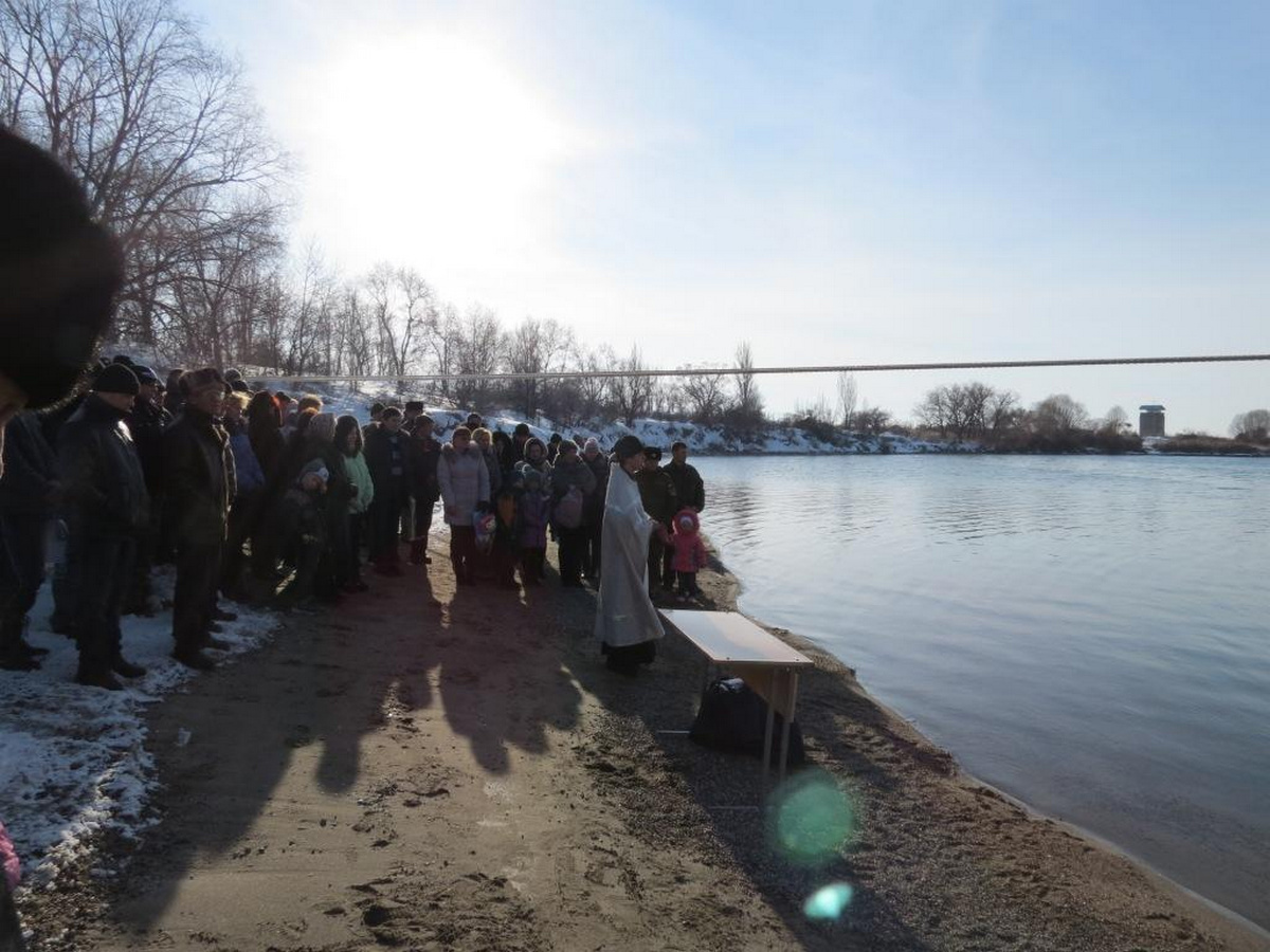 На авиабазе «Кант» крещенские купания по традиции прошли на аэродромной территории. Иорданью для военнослужащих и членов их семей стал здешний пруд, вода которого была освящена в этот большой православный праздник иереем Евгением Циклаури.