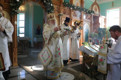 В храме святого праведного Иоанна Кронштадтского митрополит Викентий в сослужении епископа Бишкекского и Кыргызстанского Савватия и сонма духовенства совершил вечернее богослужение.
