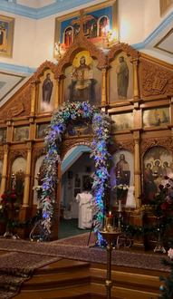 Во второй половине дня епископ Савватий направился в село Теплоключенка, где, в храме влкм. Дмитрия Солунского совершил рождественскую вечернюю службу. По ее окончании верующие собрались в импровизированной ледяной пещере: здесь звучали колядки, а настоятель храма, иерей Алексей Данилов угощал всех горячим какао.