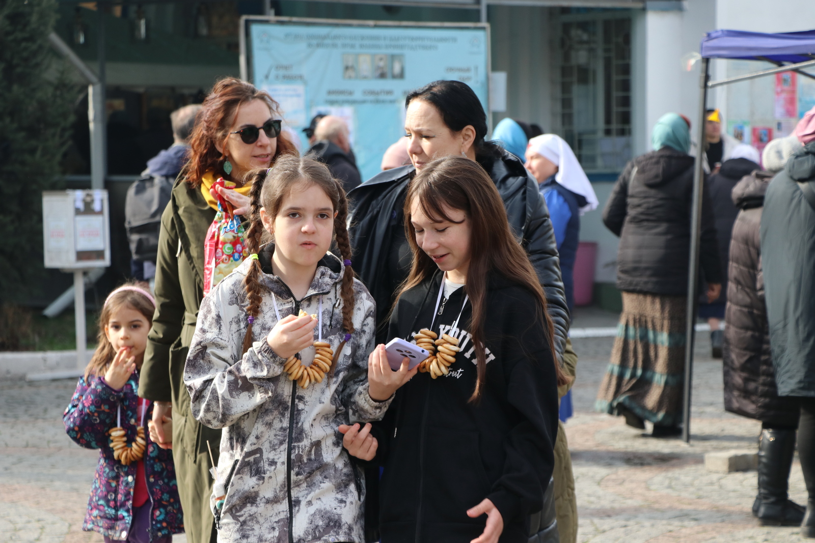 По завершении литургии, на соборном дворе, прихожан угощали чаем и сладостями, а воспитанники Воскресной школы показали кукольное представление – сказку об умении прощать «Семь раз по семь».