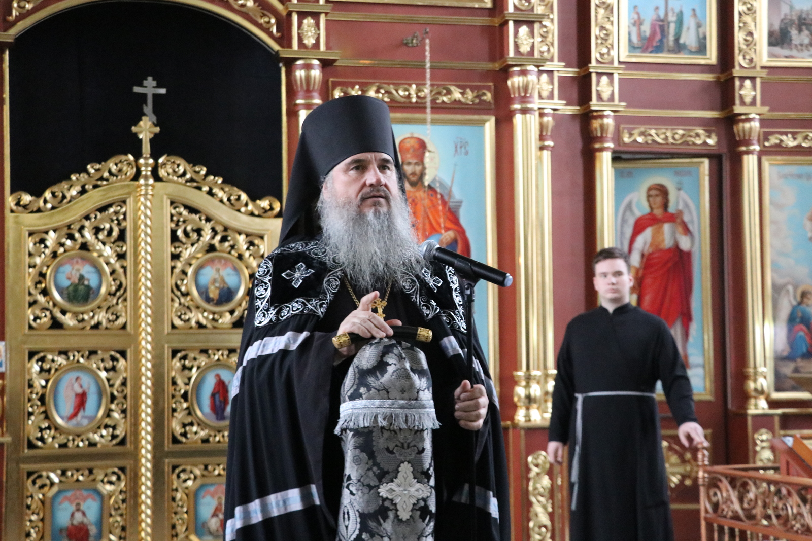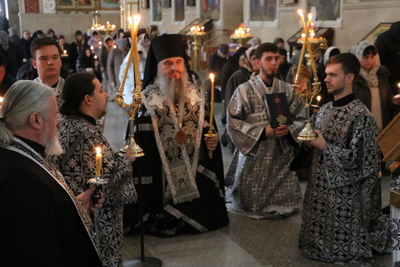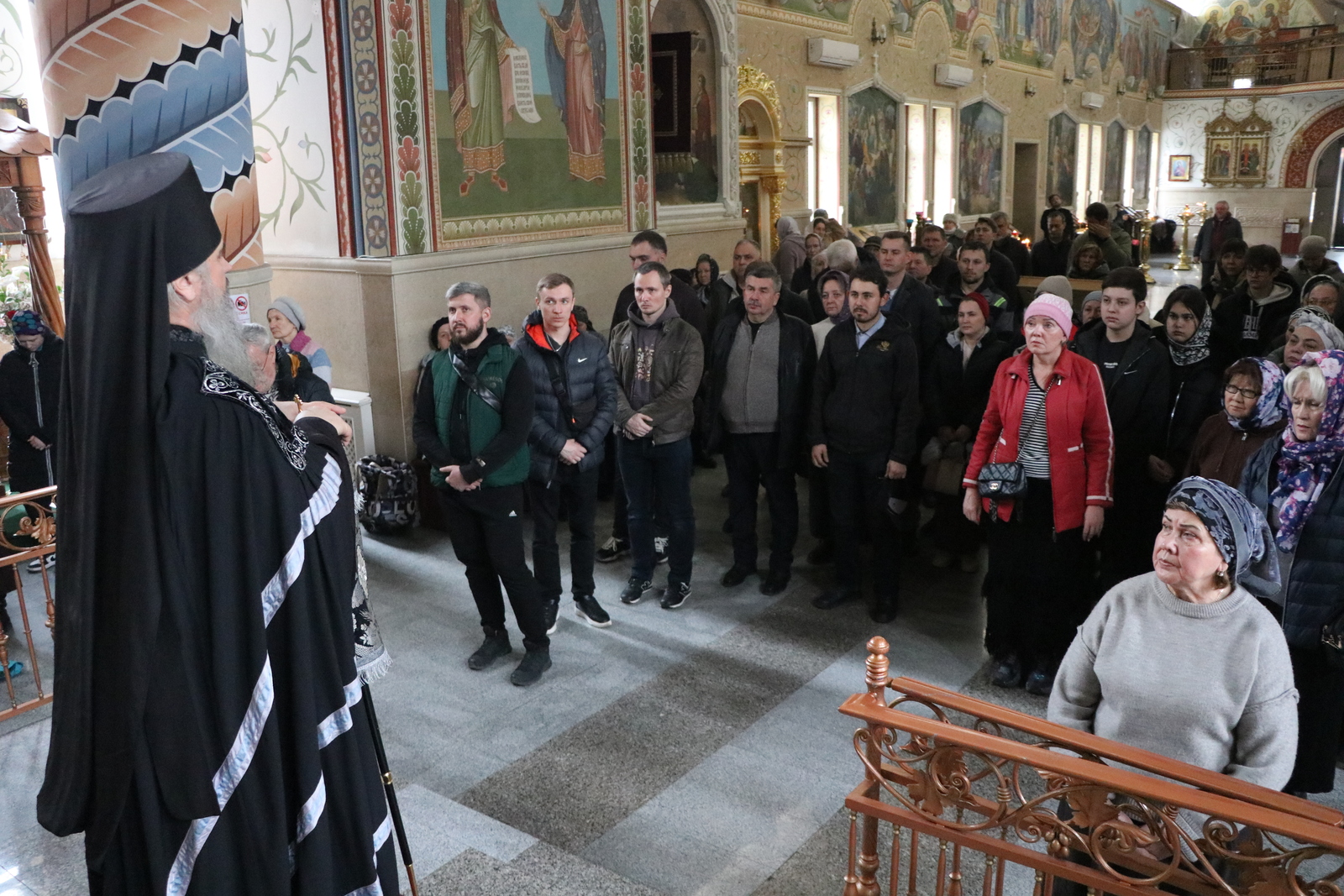 Обращаясь к молящимся, владыка напомнил, что великопостное богослужение требует от человека особого внутреннего труда – понуждения себя к молитве. Его Преосвященство обратил внимание на то, что во время службы человек может ощущать рассеянность ума и духовную немощь, однако именно возвращение внимания к молитве становится тем деланием, которое соединяет сердце молящегося с покаянным опытом святых: