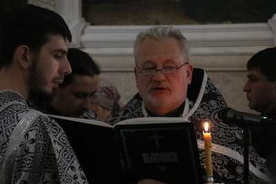 Это первая Великопостная пассия, на которой архипастырь прочитал евангельское повествование о страданиях Христа – 26 и 27 главы от Матфея.