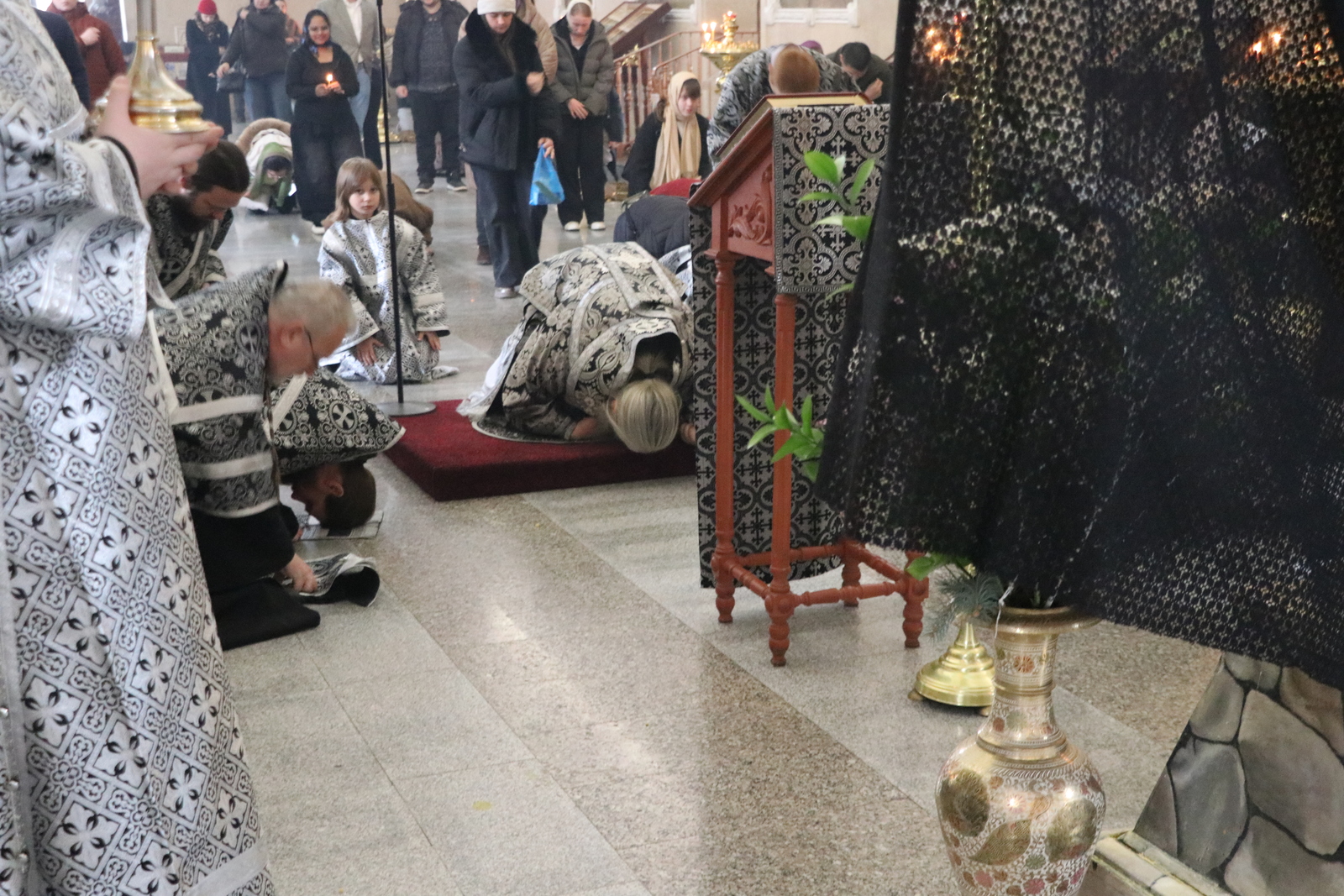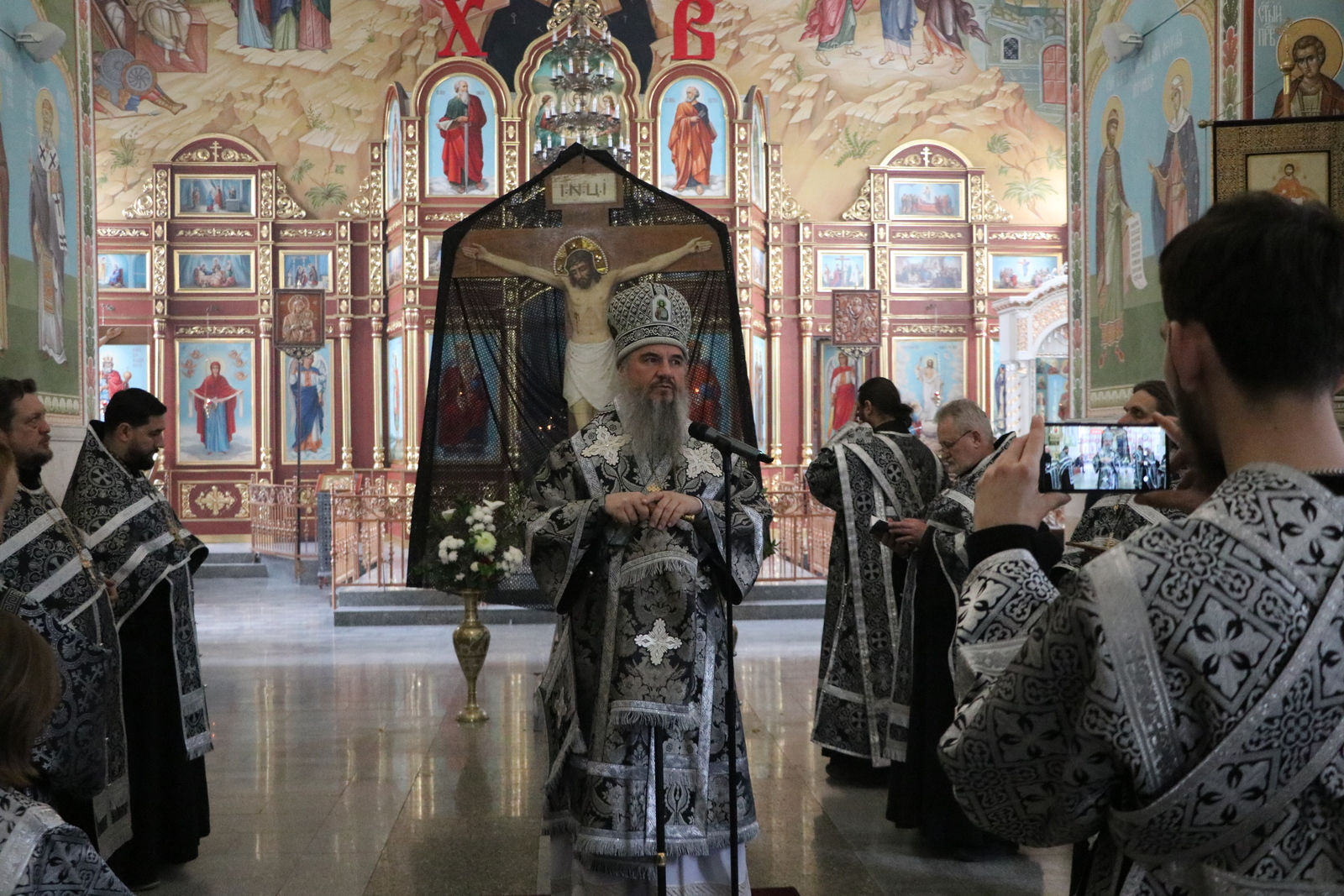 Пассия была совершена в середине храма перед Распятием, которое выставляется вместо аналоя перед великой вечерней.