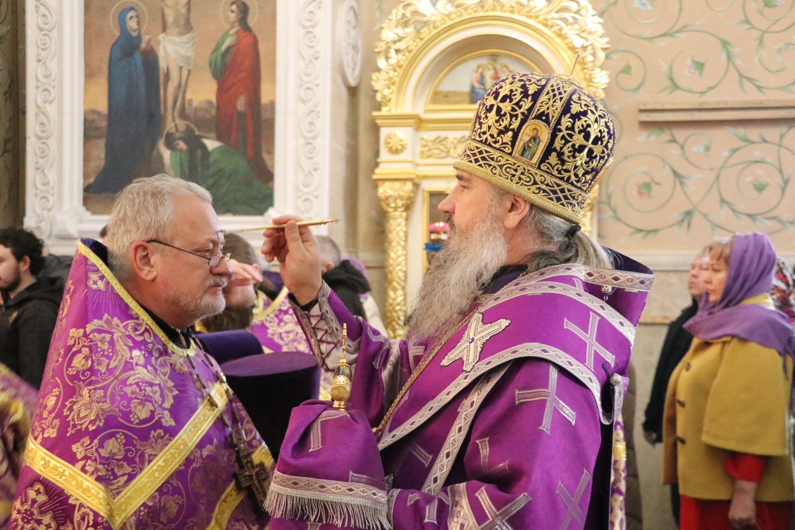 После поклонения Кресту епископ Савватий совершил помазание верующих освященным елеем.