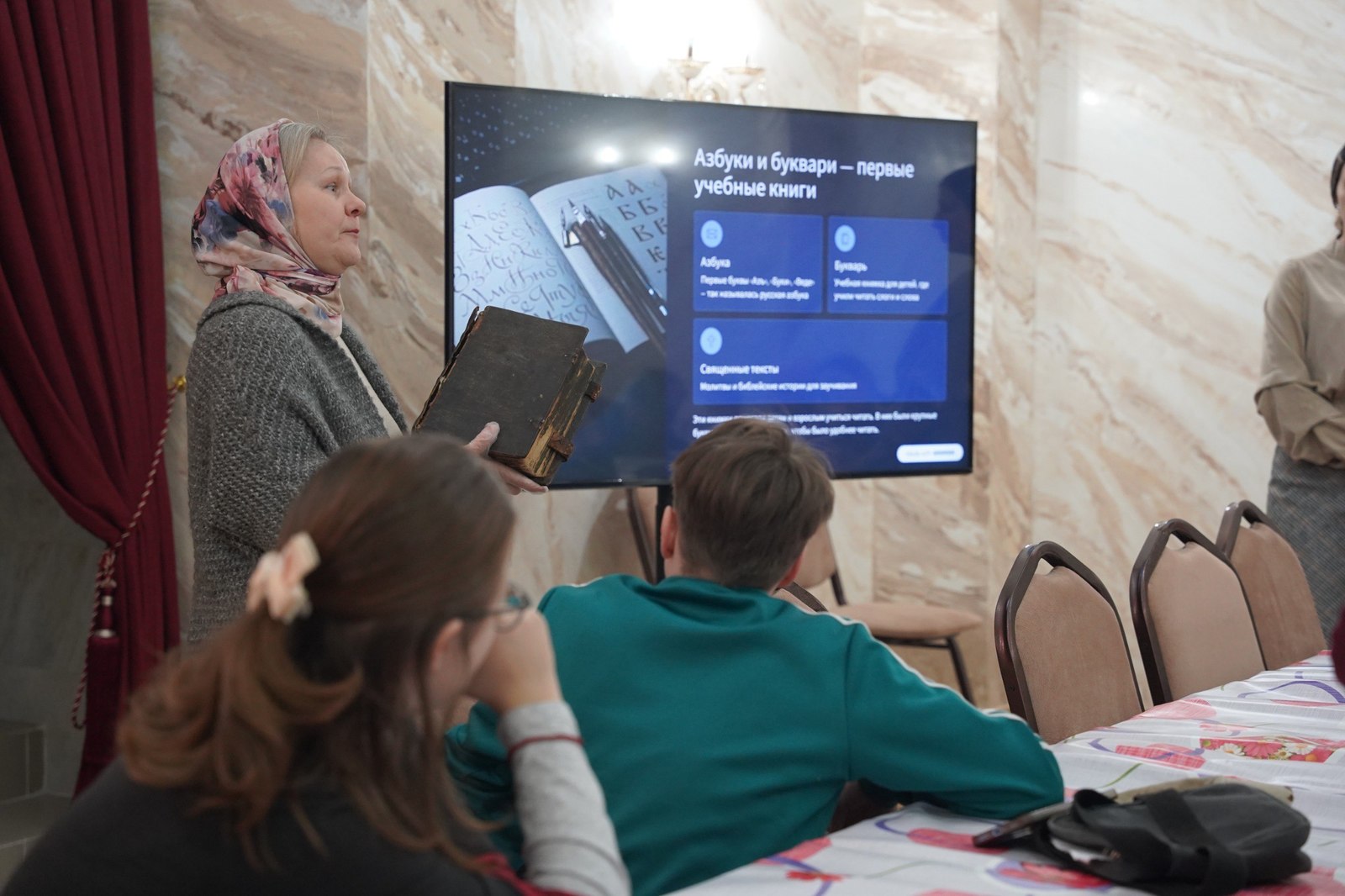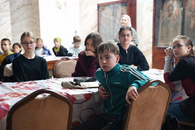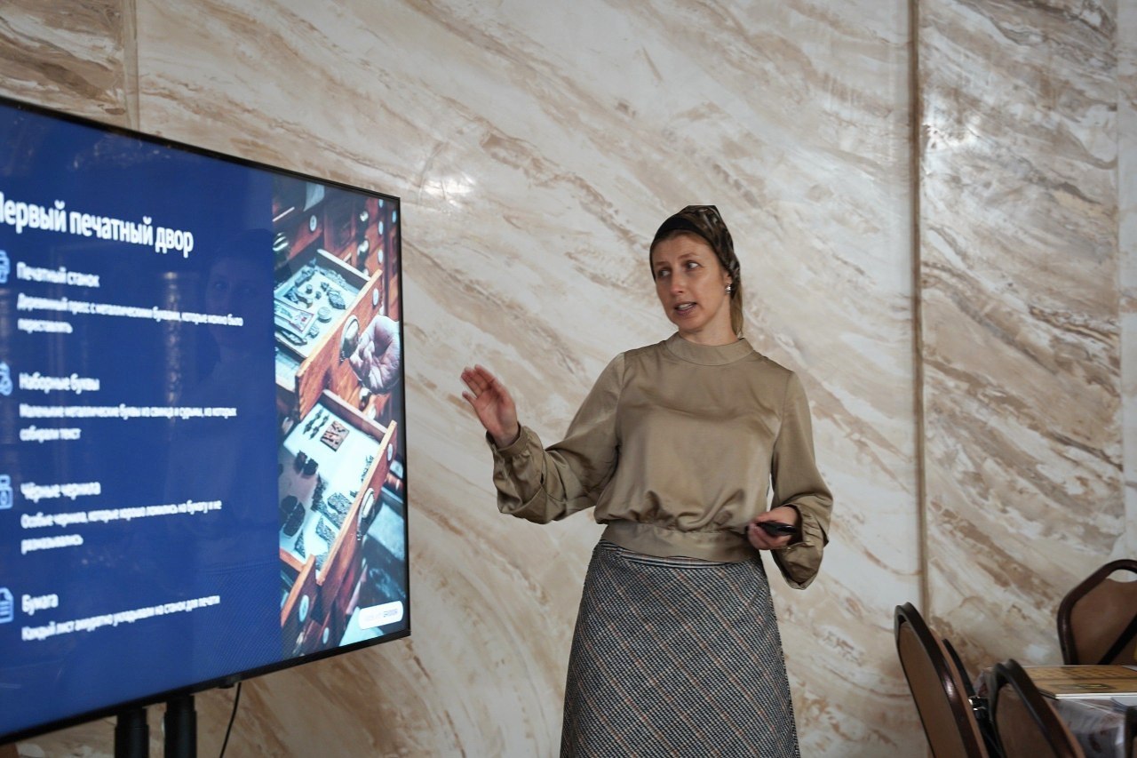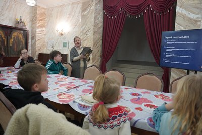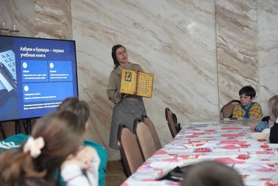 Занятие состоялось в конференц-зале собора и началось с совместной молитвы. После этого педагоги рассказали воспитанникам о появлении книгопечатания на Руси, представив увлекательную презентацию и познакомив ребят с жизнью первого русского печатника Ивана Федорова.