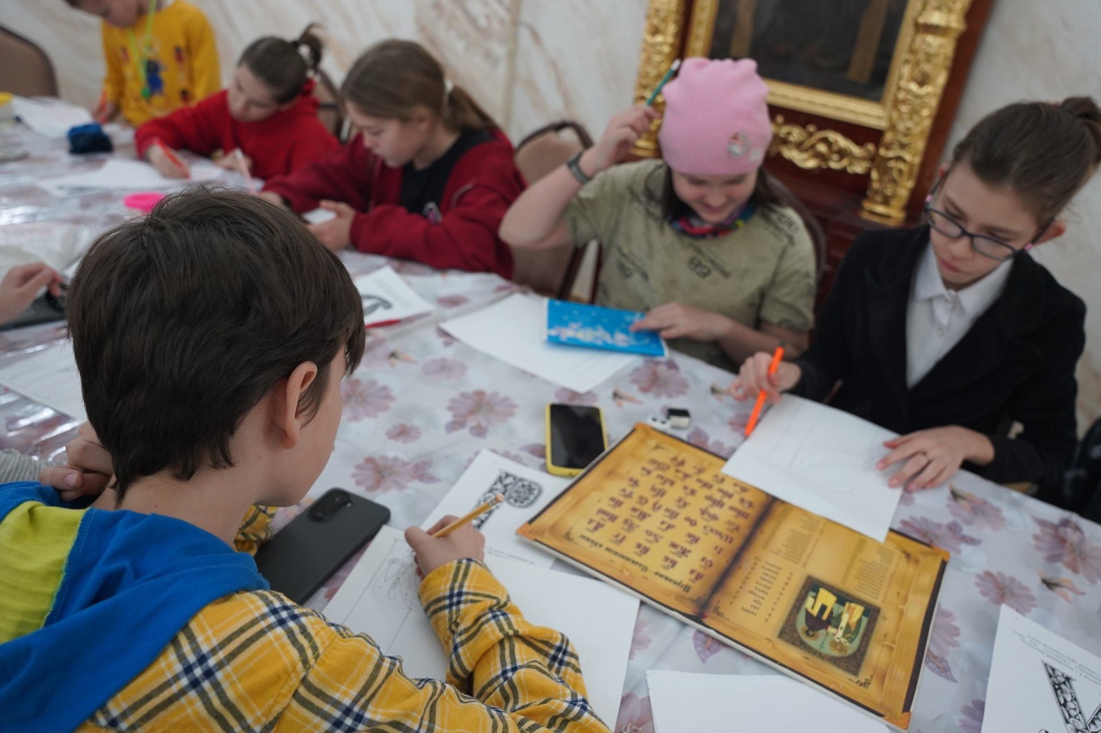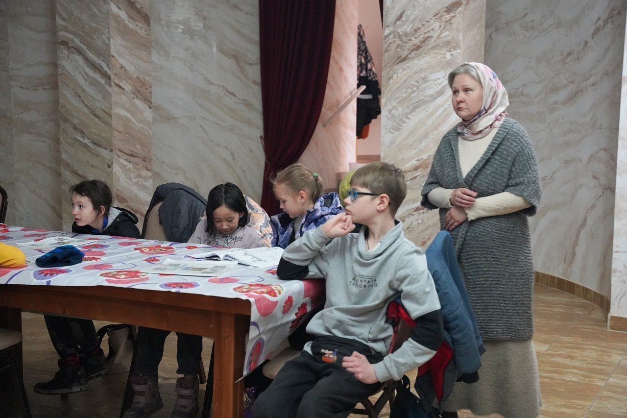 Особый интерес у детей вызвал уникальный экземпляр книги XIX века, представленный из фондов музея храма. Ребята смогли увидеть старинное издание и прикоснуться к истории книжной культуры.