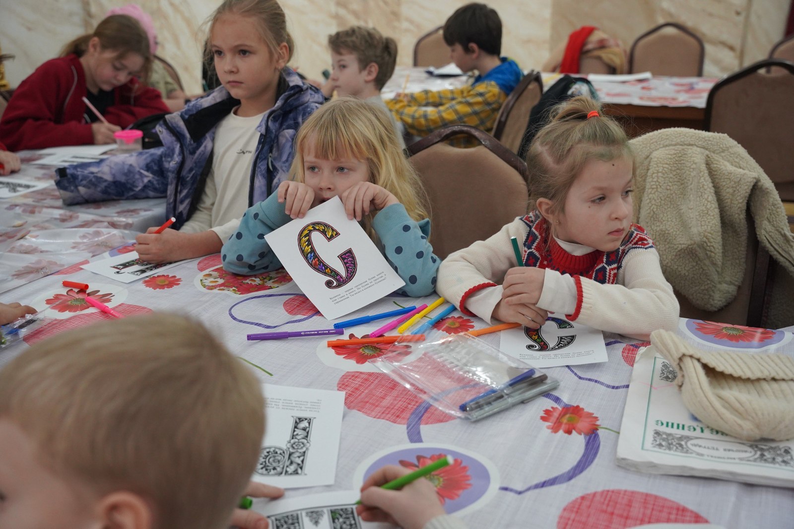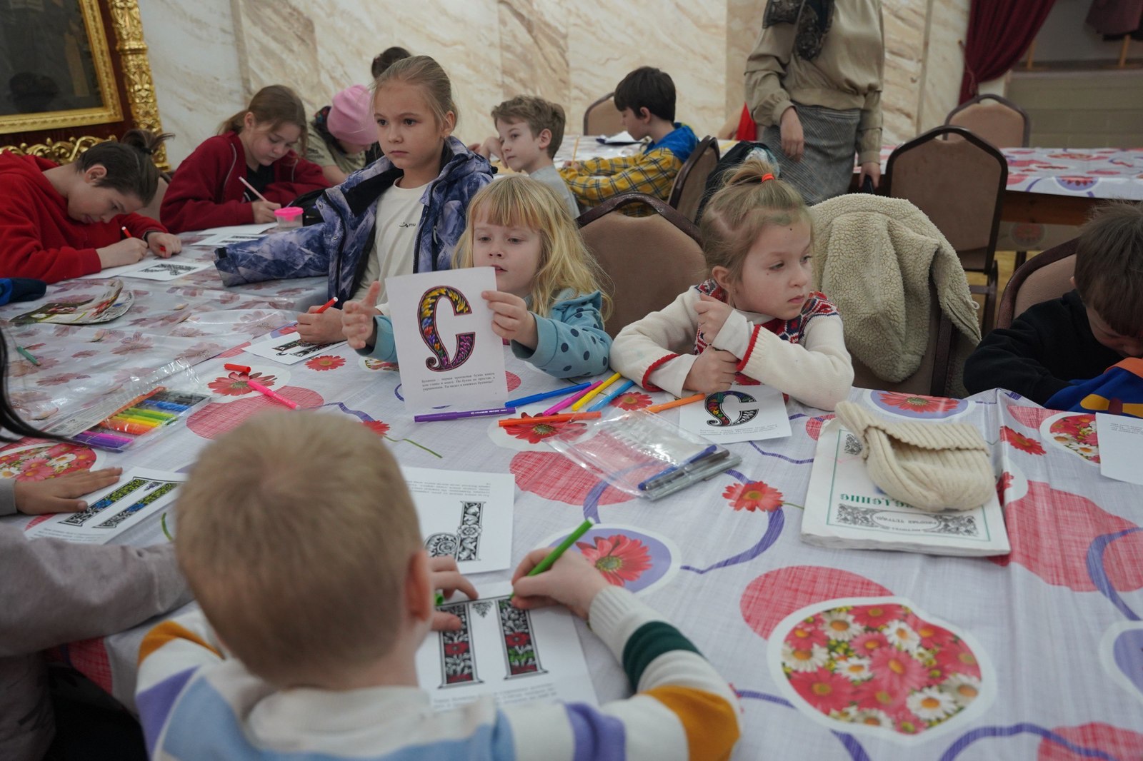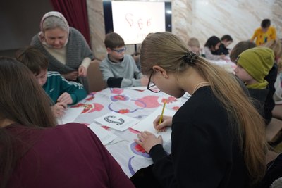 Завершилось занятие творческим мастер-классом: для того, чтобы каждый воспитанник Воскресной школы смог почувствовать связь с традицией старинного письма, участникам предложили написать первую букву своего имени в виде древней буквицы.