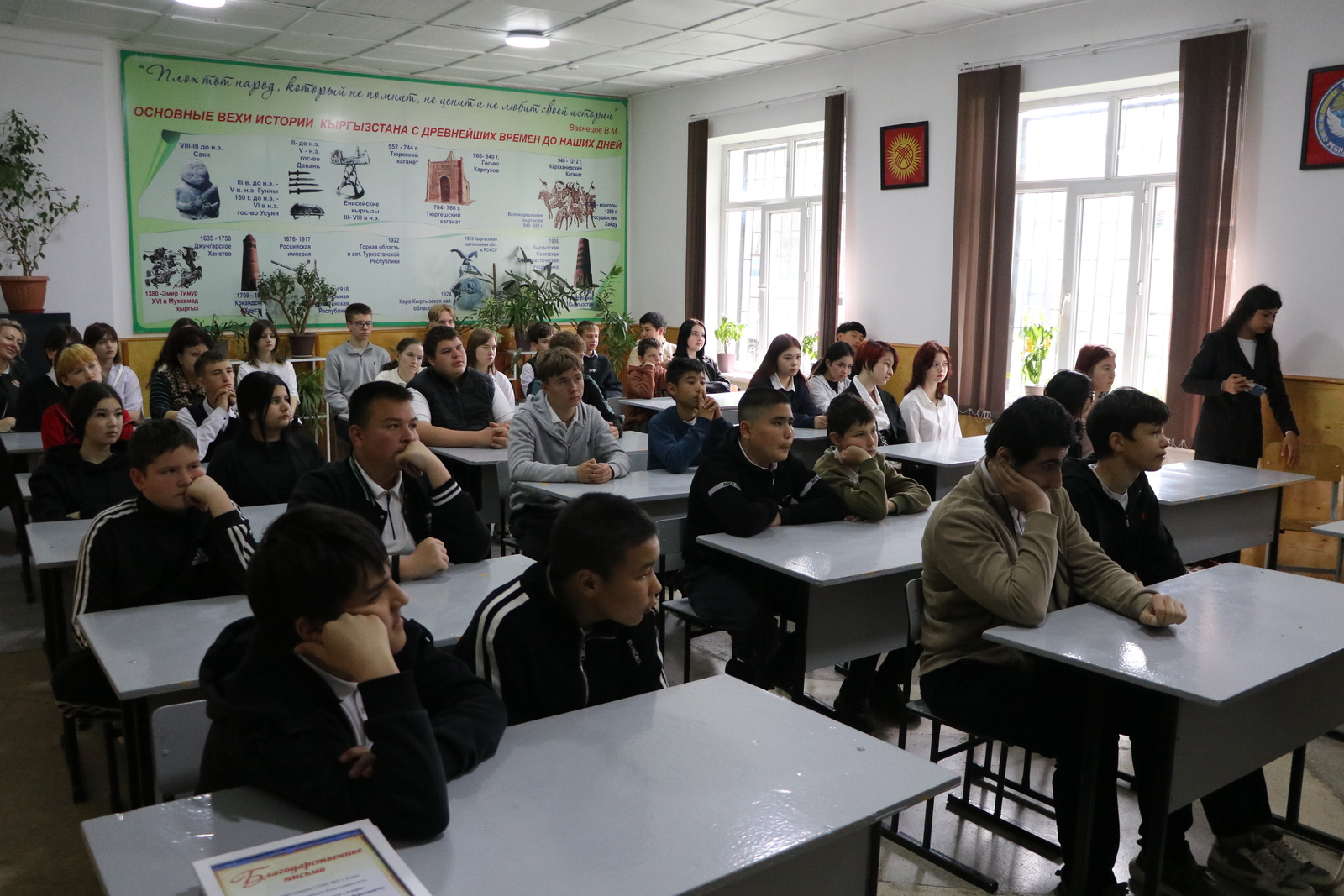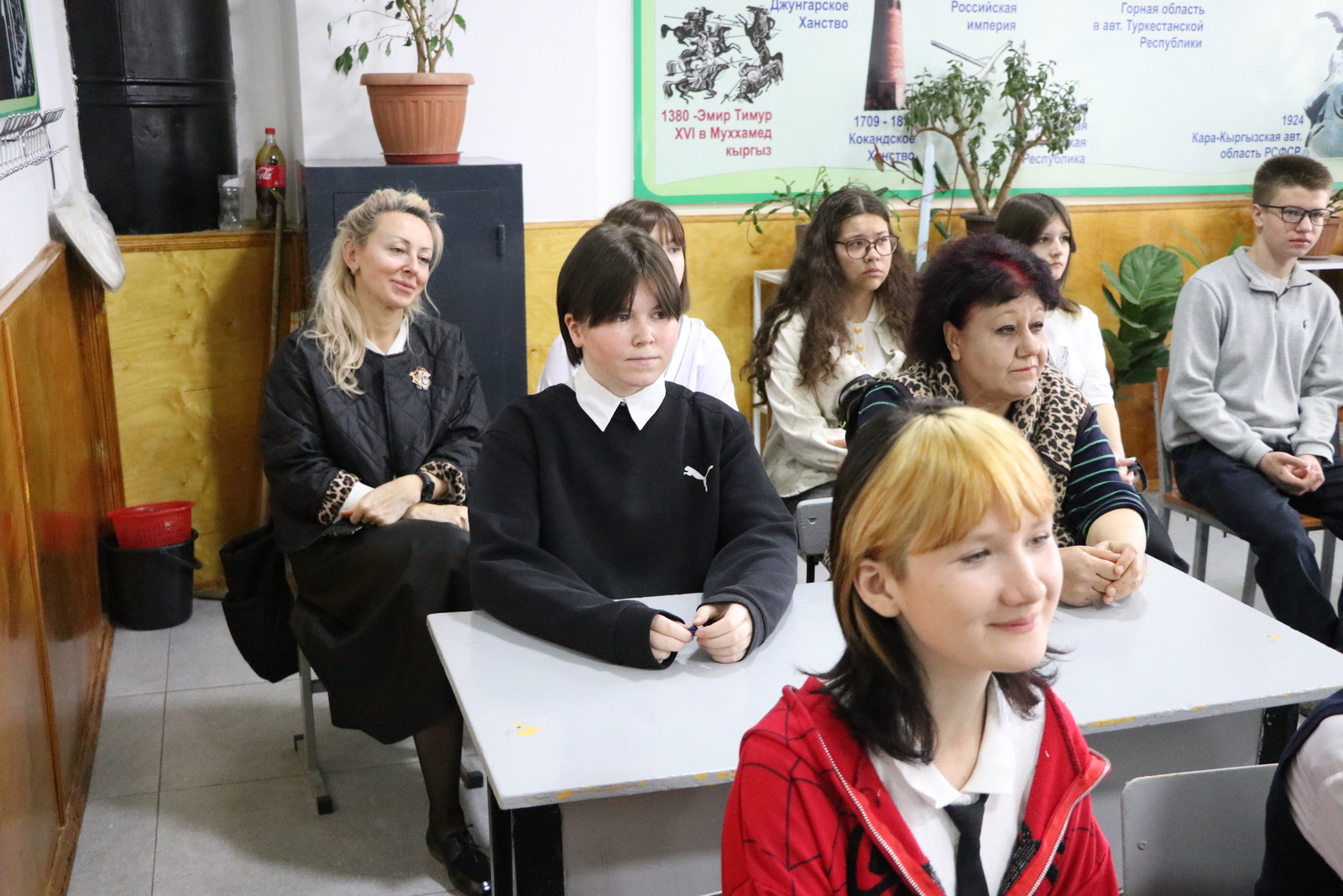 31 марта в средней общеобразовательной школе № 5 г. Кант прошел открытый урок «Нравственность – это твоя суперсила», объединивший 41 ученика 8–9 классов. Встреча состоялась по инициативе директора школы Оксаны Валентиновны Бабюк. На мероприятие также были приглашены ученики СОШ № 2 во главе с директором Л. В. Белоконевой.