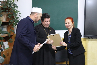 В мероприятии приняли участие представители Бишкекской епархии и Духовного управления мусульман Кыргызстана. Со стороны ДУМК выступил имам г. Кант Дургалов Мухаммад Афисович, от епархии – настоятель храма Архистратига Божия Михаила иерей Александр Пелин и руководитель информационно-издательского отдела Анна Грекова.