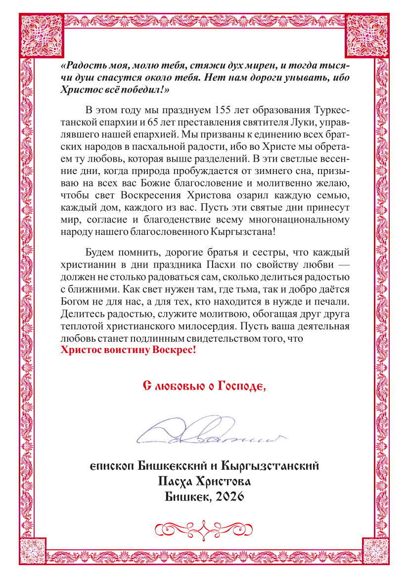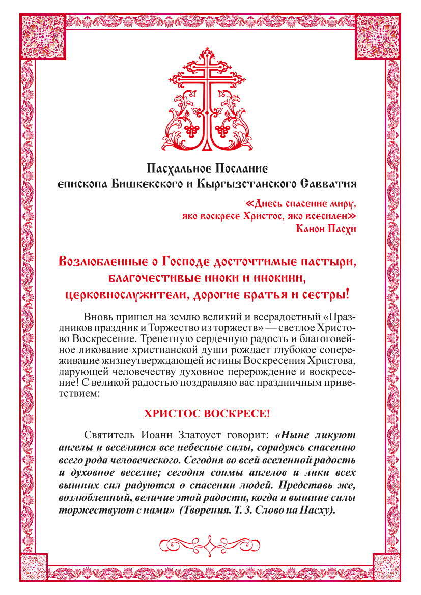 Пасхальное послание епископа Бишкекского и Кыргызстанского Савватия