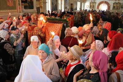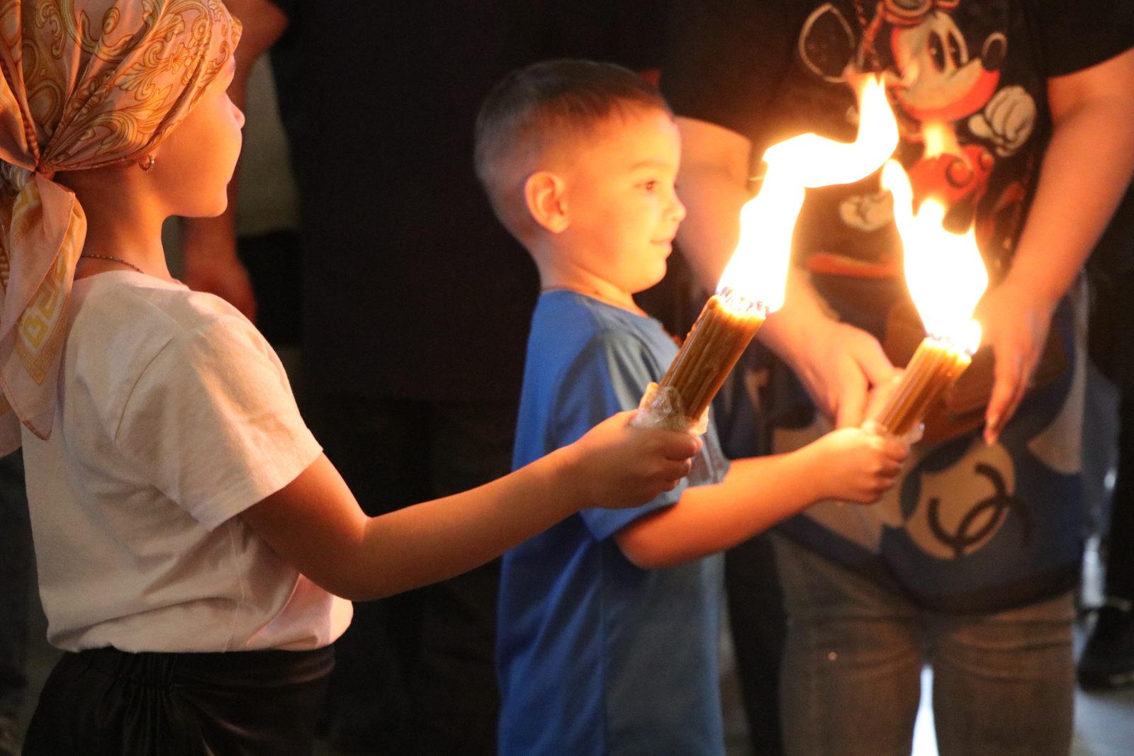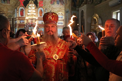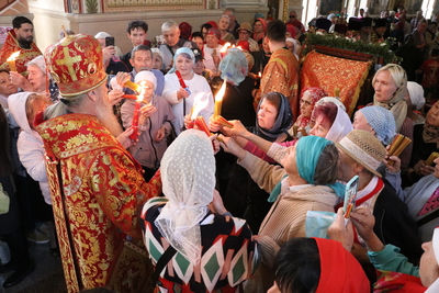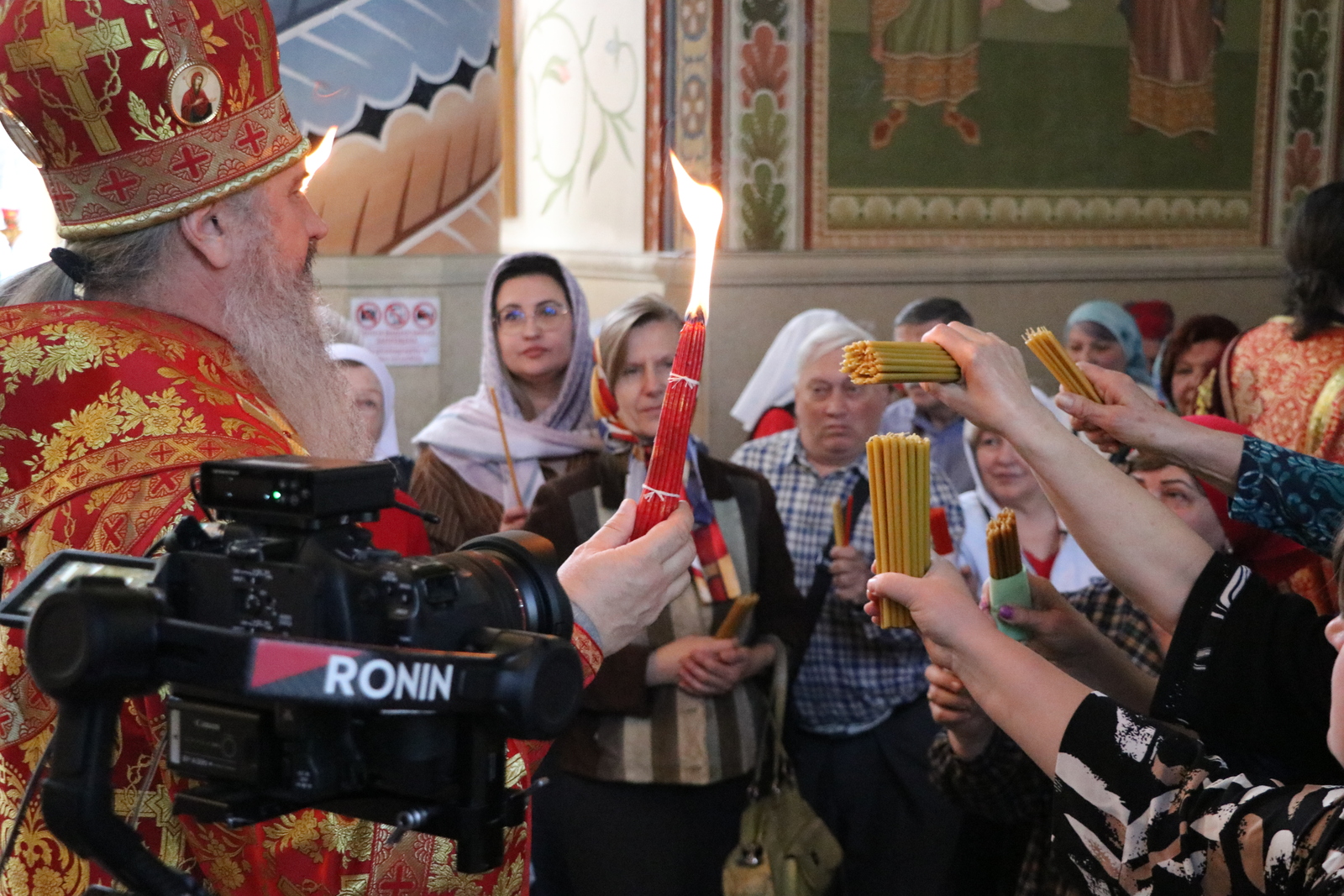 Вечером в Свято-Воскресенском кафедральном соборе была совершена торжественная Пасхальная вечерня. Во время богослужения архипастырь раздал Благодатный огонь многочисленным прихожанам. Храм наполнился особым трепетом и пасхальной радостью.