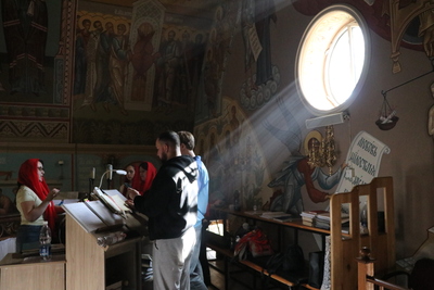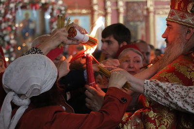 В этом году святыню в Кыргызстан доставил руководитель паломнического отдела иерей Вадим Паскин. В кафедральном соборе Благодатный огонь встретил епископ Бишкекский и Кыргызстанский Савватий.