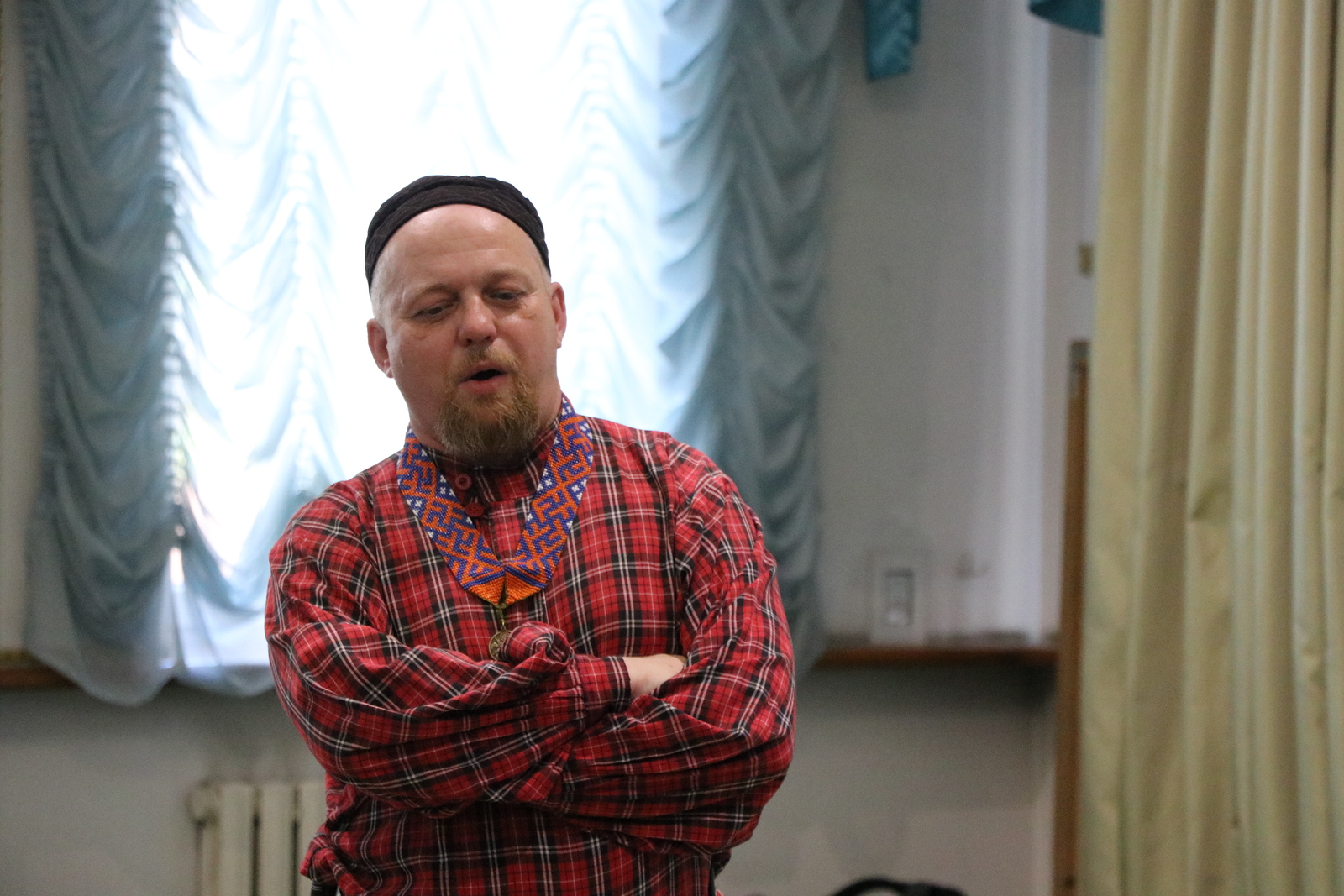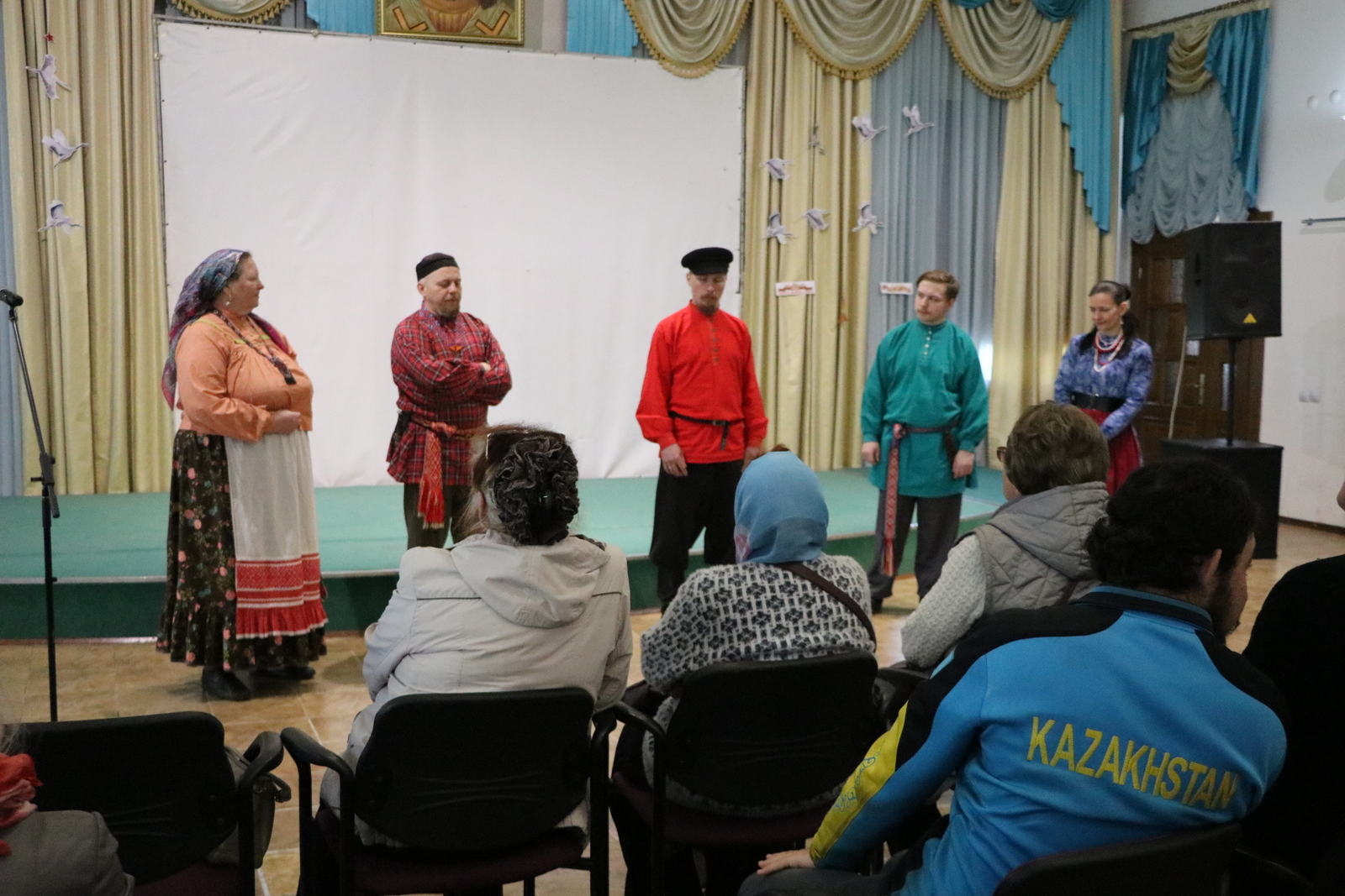 Выступление было выстроено как чередование рассказа и песни. Участник музыкального коллектива, Илья Чешегоров, делился историей переселений, говорил о формировании сибирских традиций, о казачестве, о том, как формировались культурные особенности в разных регионах. Эти пояснения служили проводником к каждой следующей песне.
