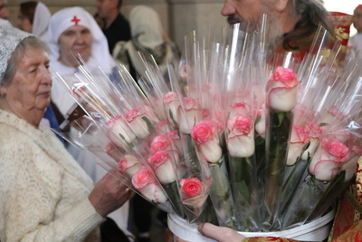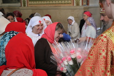 По завершении богослужения всем женщинам, присутствовавшим в храме, были вручены цветы, как знак благодарности и поздравления с праздником.