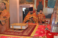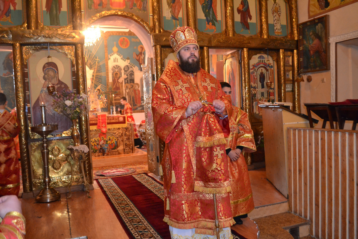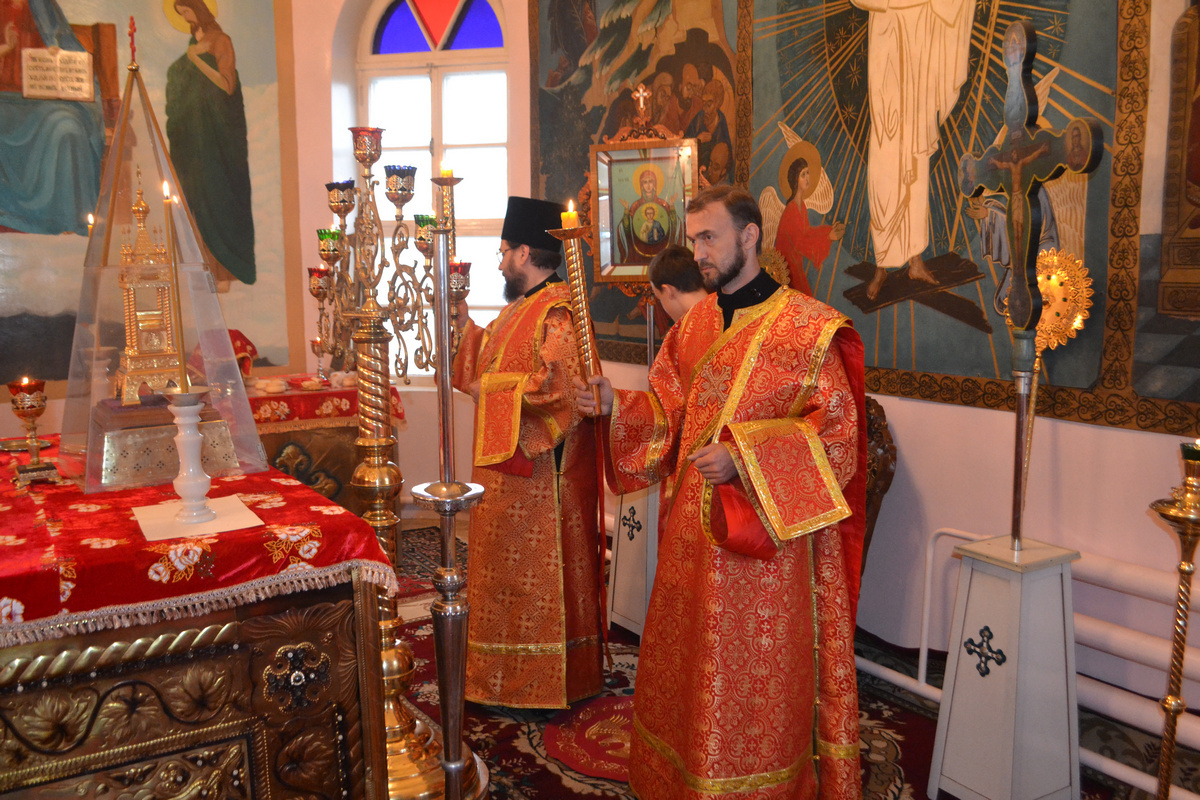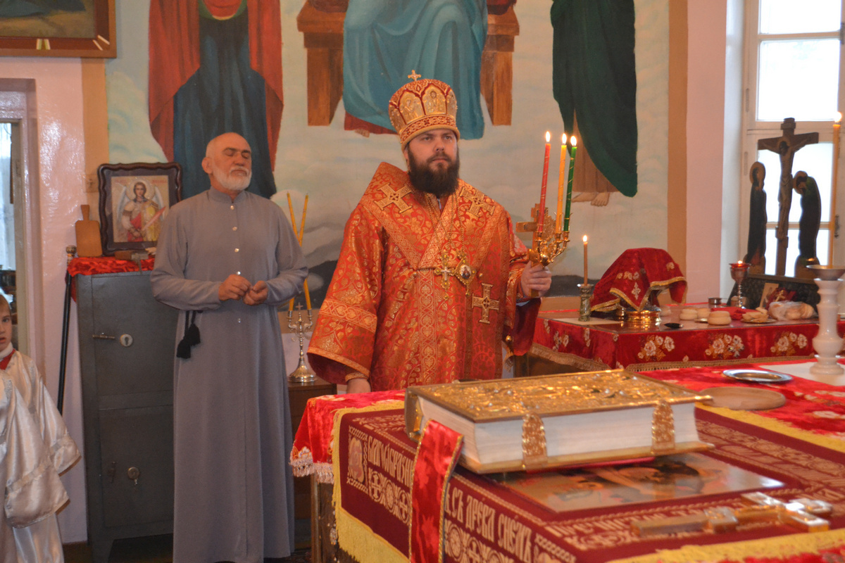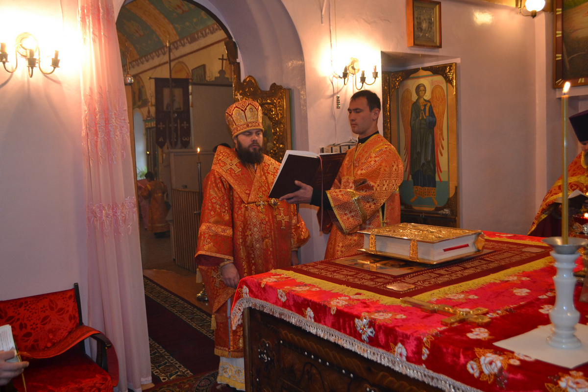 Его Преосвященству сослужили: настоятель храма Покрова Божией Матери, иерей Олег Бибик, иерей Георгий Дворовой, архидиакон Антоний Шабалин, протодиакон Сергий Черкашин.