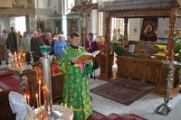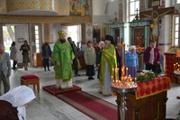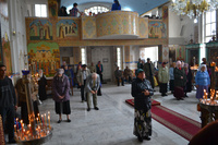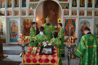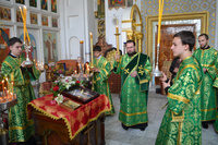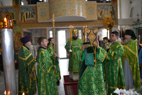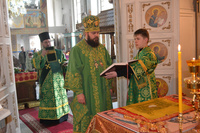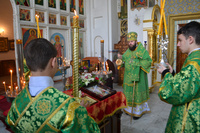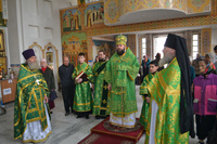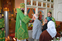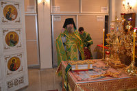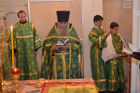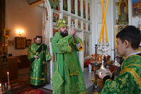 Епископу Даниилу сослужили: протоиерей Александр Белоусов, иеромонах Сергий (Виноградский), архидиакон Антоний Шабалин.