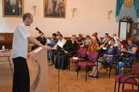 Озмитель.Е.Е., руководитель церковно-археологического отдела Бишкекской и Кыргызстанской епархии; Цуркан.Н.Д., руководитель отдела церковного пения Бишкекской и Кыргызстанской епархии; Анастасьян.Ю.С., руководитель культурного отдела Бишкекской и Кыргызстанской епархии; Басова М.А., преподаватель Церковно-приходской школы князя Владимира; Чумак Р.В., пономарь Свято-Владимирского храма г.Бишкек; Павличенко З.Ю., аспирант КРСУ; Потрясов.Н, Шмидт.Н