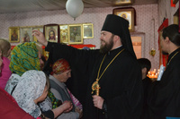 По окончании литургии владыка Даниил очень тепло пообщался с прихожанами, обратился к ним с архипастырским словом, ознакомился со строящимся храмом и обсудил проблемные вопросы по продолжению строительства с настоятелем прихода.