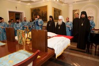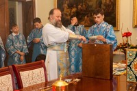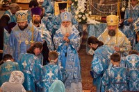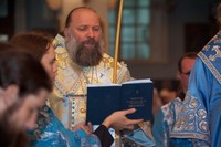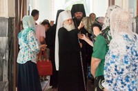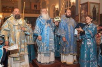 По окончании литургии была прочитана молитва Пресвятой Богородице, а затем митрополит Викентий обратился к верующим со своим архипастырским словом. Владыка поблагодарил прибывших гостей – епископа Питирима и епископа Даниила – за радость молитвенного общения.