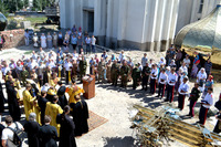 «Дорогой владыка Даниил, дорогие отцы, братия и сестры! Сегодня мы имеем большую радость. Совершилось великое славное дело для этого строящегося храма – мы освятили кресты и купола. Крест есть венец храма Божия. Очень знаменательно, что это совершается в Юбилейный год тысячелетия преставления святого равноапостольного великого князя Владимира. И мы рады, что в этом году мы освещаем кресты, а если даст Бог, и сам Владимирский храм достроим. Это будет большой подарок нашему великому святому, который является началом Русской Православной Церкви, началом Православной веры на наших землях. И мы как духовные дети равноапостольного князя Владимира вносим сегодня свою лепту в продолжение начатого им издревле пути.