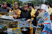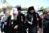 Чин освящения крестов возглавил митрополит Ташкентский и Узбекистанский Викентий в сослужении епископа Душанбинского и Таджикистанского Питирима и епископа Бишкекского и Кыргызстанского Даниила.