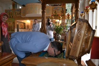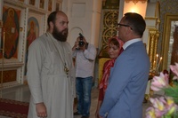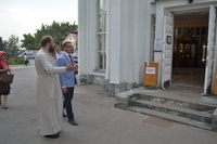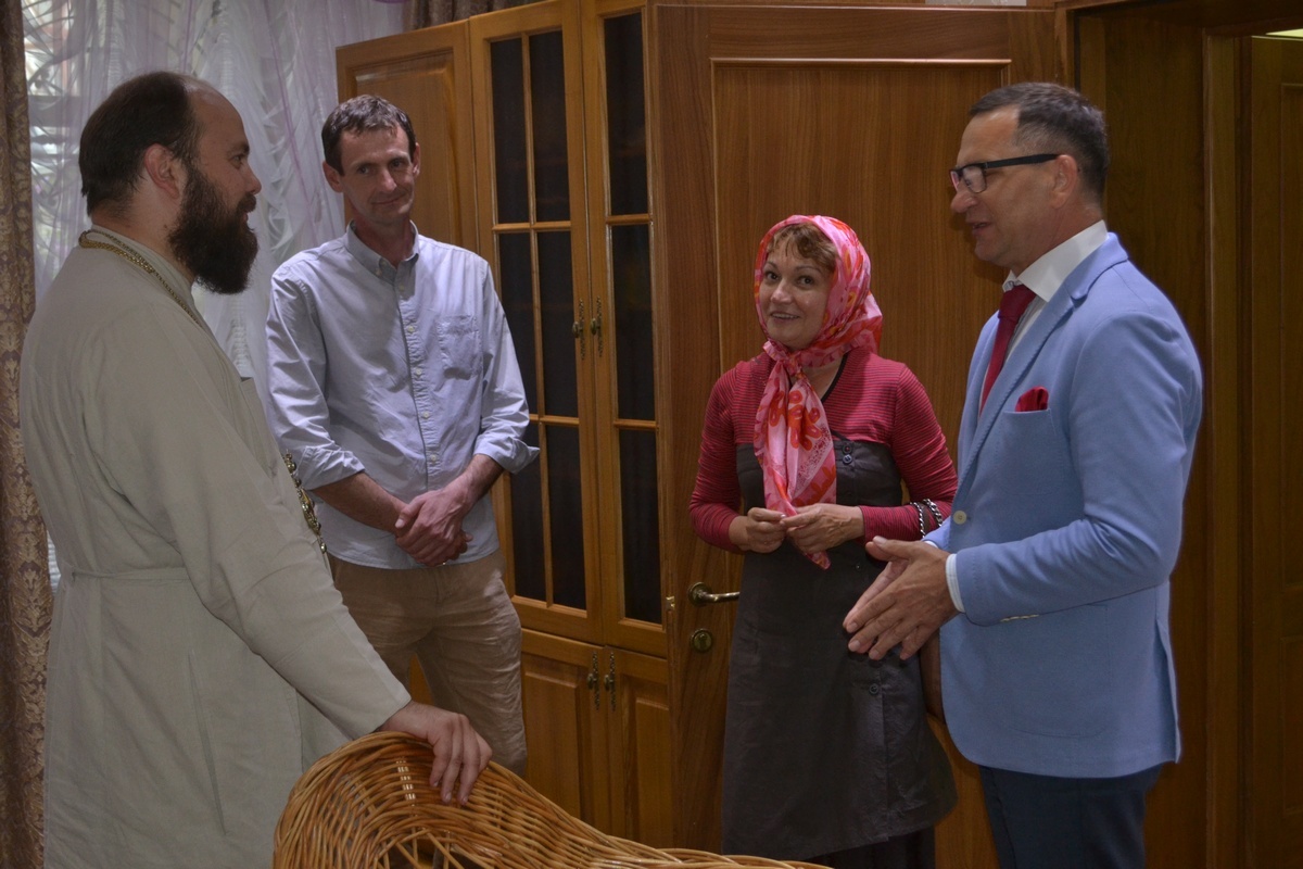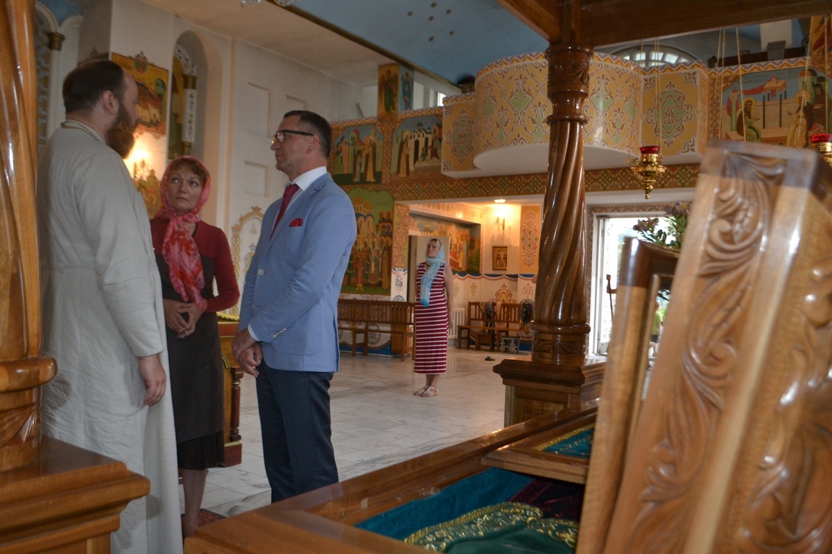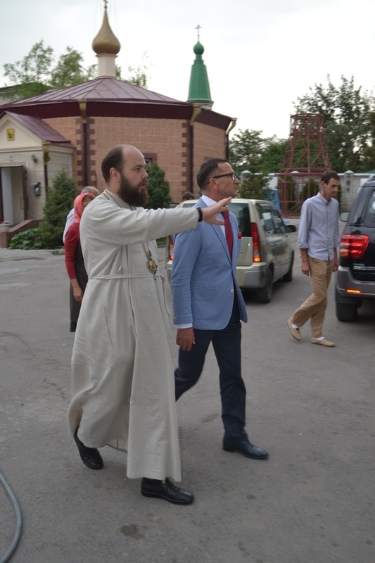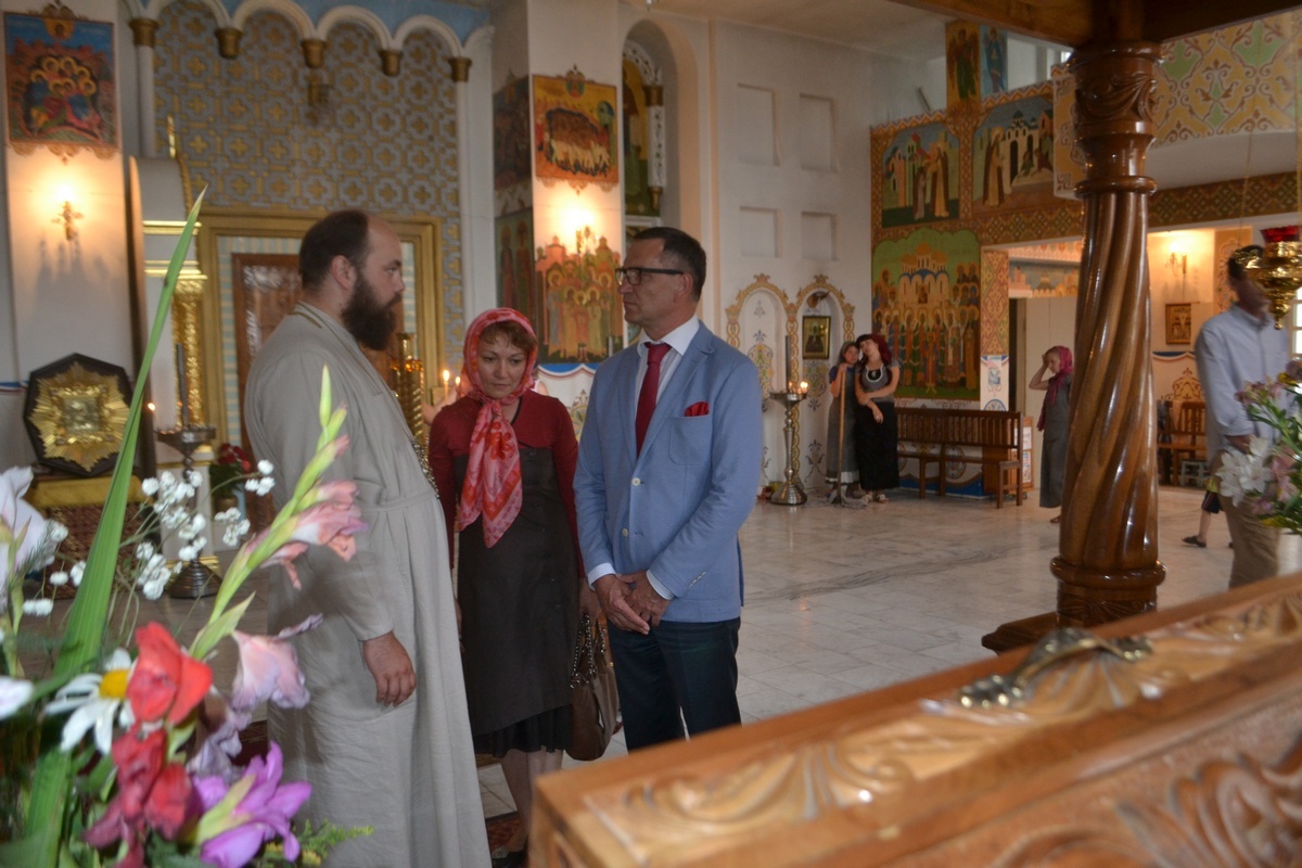 По завершении встречи, Его Преосвященство пригласил гостей в Алексеевский придел Свято-Воскресенского собора, к раке преподобноисповедника Ираклия Иссык-Кульского. Владыка Даниил рассказал о преподобном Ираклии, как о небесном покровителе Среднеазиатского Митрополичьего округа, после чего гости смогли приложиться к его святым мощам и помолиться о мире на Украине.