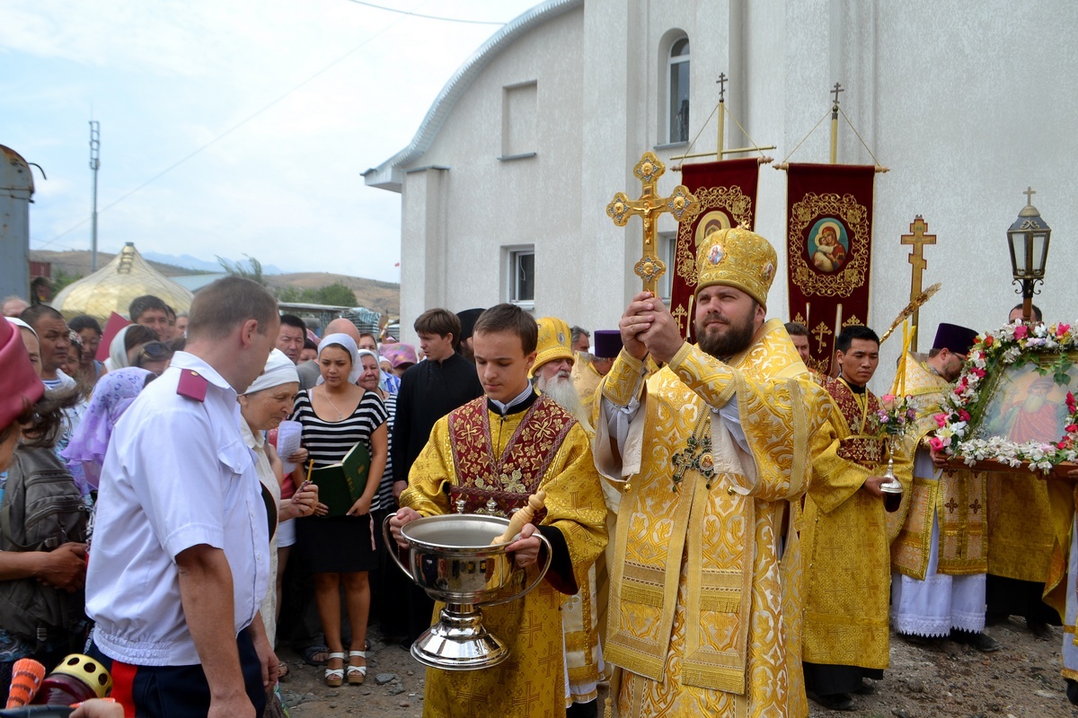 В завершении службы был совершен молебен великому князю с Крестным ходом вокруг Владимирского собора. После чего епископ Даниил поблагодарил посла Российской Федерации в Кыргызстане А. А. Крутько, молившегося за литургией в стихаре алтарника, всех присутствующих за совместное молитвенное общение. Владыка передал настоятелю Владимирского храма протоиерею Алексию Зайцеву прекрасно полиграфически выполненную Библию с подарочной надписью для Александра Ниязова, одного из благотворителей собора. В дар храму владыка преподнес написанную маслом икону Божией Матери «Шуйская и Смоленская».