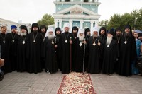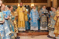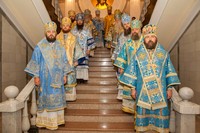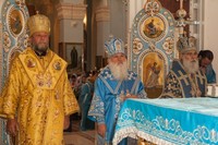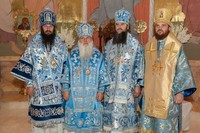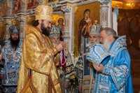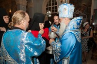 После причастия, вознесенных молитв и провозглашения многолетия владыку Викентия поздравили приглашенные гости-архиереи.