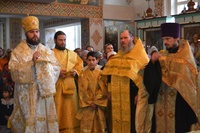 Его Преосвященству сослужили: иеромонах Александро-Невской Лавры города Санкт-Петербурга Димитрий (Самойлов), клирики Свято-Воскресенского собора – иерей Георгий Дворовой, иерей Андрей Кунавин, иерей Олег Белотуркин.