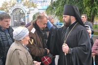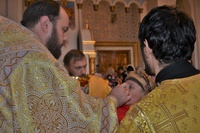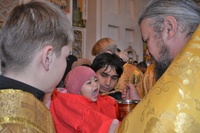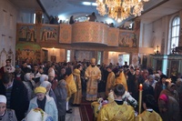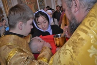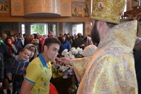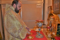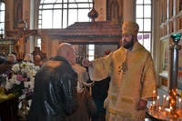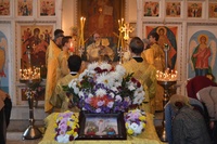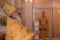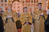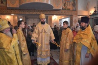 За богослужением правящему архиерею сослужили: митрофорный протоиерей Валентин Никонов, клирик Свято-Воскресенского собора Георгий Дворовой.