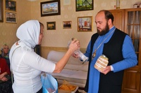 Россияне приехали в Бишкек в канун памяти преподобного Трифона, архимандрита Вятского и собора Вятских святых: «Для того чтобы владыке доставить приятную память, мы благословились приехать на день празднования Вятских святых. Завтра 21 октября – день памяти нашего Вятского святого преподобного Трифона и собора всех Вятских святых». Во время встречи с архипастырем, паломники преподнесли в дар главе Бишкекской епархии икону «Собор Вятских святых», книги, лампаду и вкусный вятский пирог.