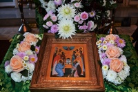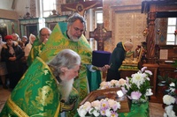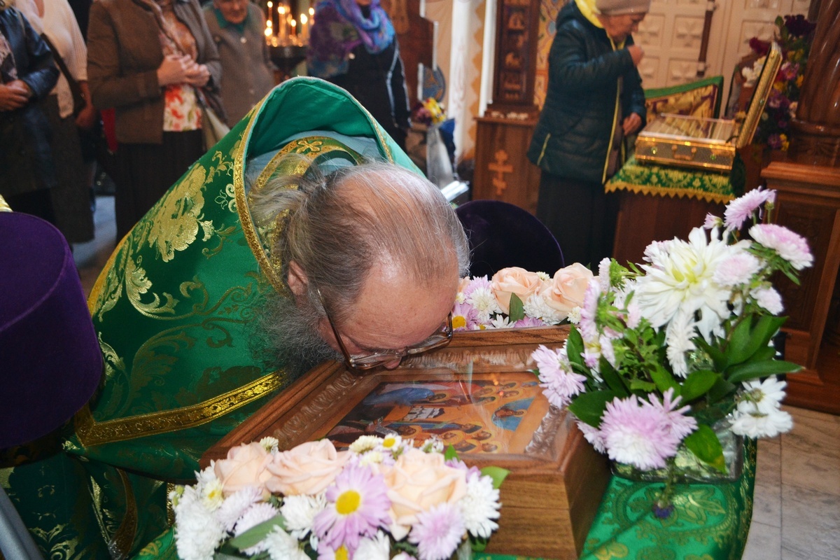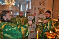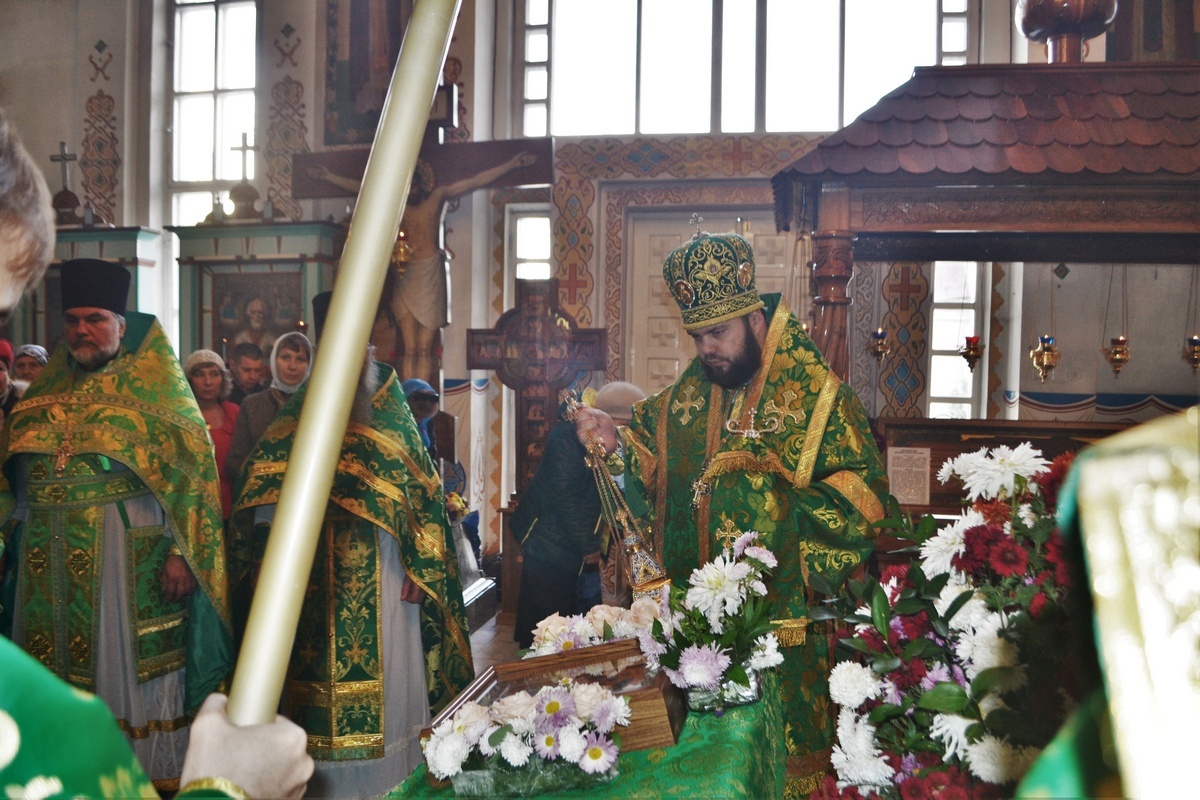 По завершении Божественной литургии епископ Даниил поприветствовал прихожан и группу Вятских паломников, преподал всем архипастырское благословение и рассказал о Вятских святых: