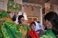 На Божественной литургии присутствовала группа Российских паломников, которым владыка Даниил сказал напутственные слова: «Примите дорогие паломники нашу сердечную любовь от православных кыргызстанцев. Надеюсь, что наше солнышко и наша любовь согреет ваши сердца и души и вы от сегодняшнего богослужения до 31 октября, будете пребывать, Бог даст, на Среднеазиатской земле и чувствовать себя здесь счастливыми, радостными и обогретыми благодатью Святаго Духа».