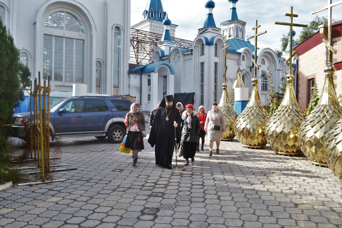 По окончании богослужения владыка Даниил ознакомил паломников с деятельностью Бишкекской и Кыргызстанской епархии. Рассказал о реставрации и реконструкции Свято-Воскресенского кафедрального собора, показал школу святого Владимира, познакомил с работой молодежного отдела епархии.