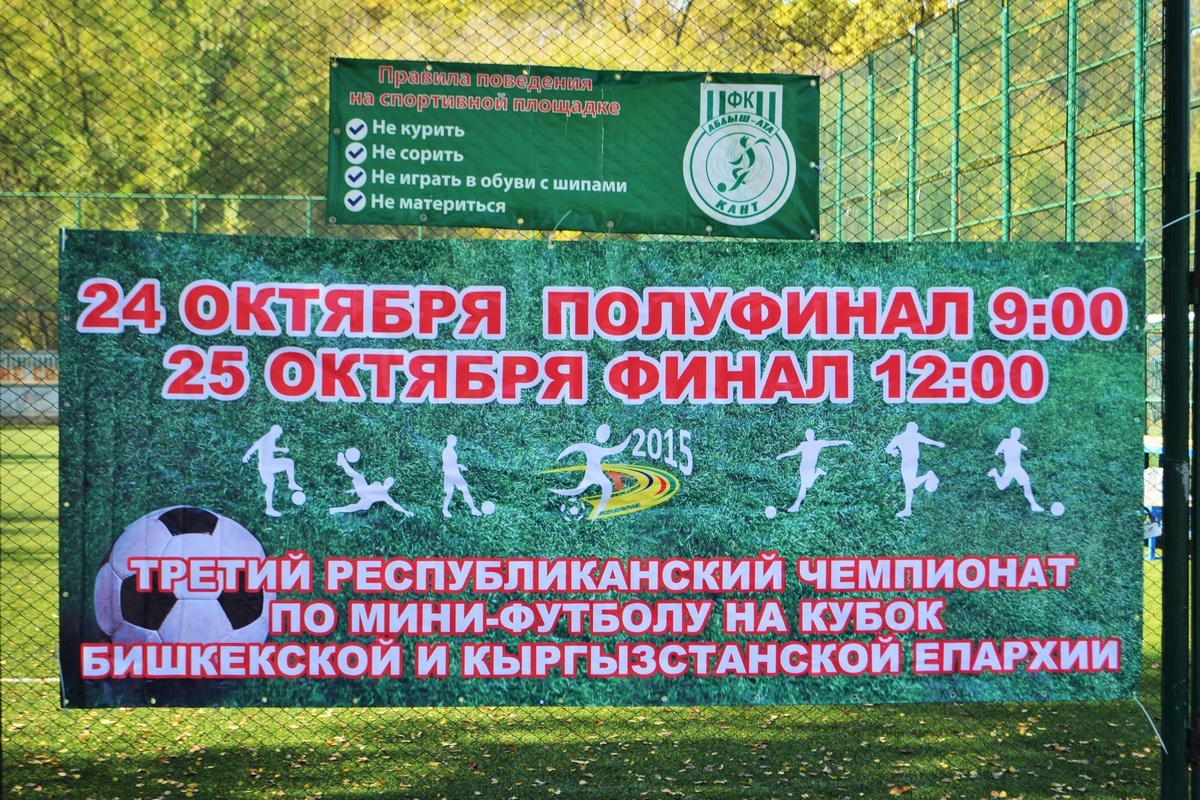 24 октября 2015 года на футбольной базе «Абдыш-Ата» города Канта состоялись финальные игры III-его Республиканского Чемпионата по мини-футболу среди юношеских команд на кубок Бишкекской и Кыргызстанской Епархии.