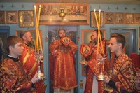 Его Преосвященству сослужили: настоятель храма великомученика Димитрия Солунского протоиерей Александр Мезенцев, клирик Свято-Воскресенского собора иерей Георгий Дворовой.