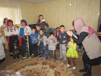 Украинская казачья группа «Червона калина» с. Полтавка исполнила песни для детей, а войсковой старшина по связям с церковью Валерий Афанасьев рассказал о жизни, традициях и обрядах казаков.