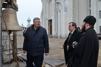 Осмотрев зал богослужений, иконостас и алтарь, делегация направилась к звоннице, на которой устанавливаются недавно отлитые колокола, которые впервые зазвучат в день торжественного освящения престола. После посещения звонницы, стороны обменявшись теплыми пожеланиями, попрощались.