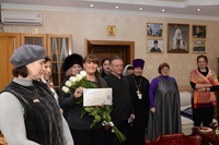 От лица сотрудников управления Бишкеской епархии поздравила владыку Даниила с хиротонией и преподнесла букет белых роз руководитель юридической службы Елена Иванова: «Вы своей любовью и заботой показываете нам путь, каким нужно следовать, и приводите очень многих ко Христу. Вашими стараниями за эти годы была поднята из ничего Уржумская епархия, когда Вы служили там. И уржумские прихожане помнят Вас, молятся за Вас и передают Вам поклон. Здесь, в Кыргызстане Вы также неутомимо трудитесь и проявляете заботу о каждом, кто к Вам обратится со своей нуждой. Благодарим Вас, за огромную работу, которую Вы проводите в деле налаживания добрых отношений между православными и мусульманами».