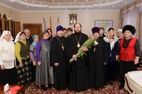 Поздравить владыку после окончания Божественной литургии пришли сотрудники Бишкекской епархии.