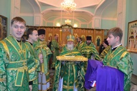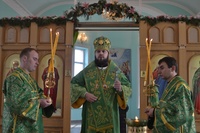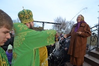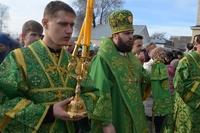 По завершении литургии владыка Даниил с духовенством епархии и прихожанами совершил крестный ход вокруг храма и отслужил молебен.