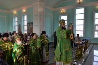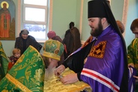 По завершении архипастырского слова, настоятель храма протоиерей Андрей Борисенко сердечно поздравил всех с престольным праздником и поблагодарил епископа Даниила за первое посещение этого святого храма: «Вы сегодня сотворили чудо и сослужили первую службу в этом году, в нашем благолепном храме. Сегодняшний день знаменателен тем, что Вы определили нам дату освящения храма 20 февраля, и мы надеемся, что свершится то, чего мы ждали в течение 5 лет».