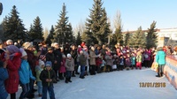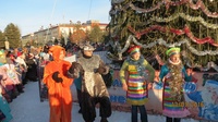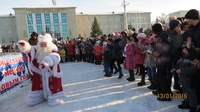 Ровно в 15.00 на площади зазвучала национальная музыка, собирая детей в праздничный хоровод, и на площади стали появляться обитатели лесных чащоб – волк, медведь и шустрая белка. Как и положено, на любимом зимнем празднике надо приложить немалые усилия, чтобы вызвать Морозного Деда под елку. Так и в этот раз звали Деда, а вышла его любимая внученька Снегурочка, а уж следом за ней и Сам пожаловал и закружились хороводы, заигрались игры, а веселье продолжалось два часа. Как отмечают организаторы «за это время никто не скучал, все, от мала до велика, танцевали, играли, радовались».