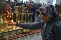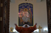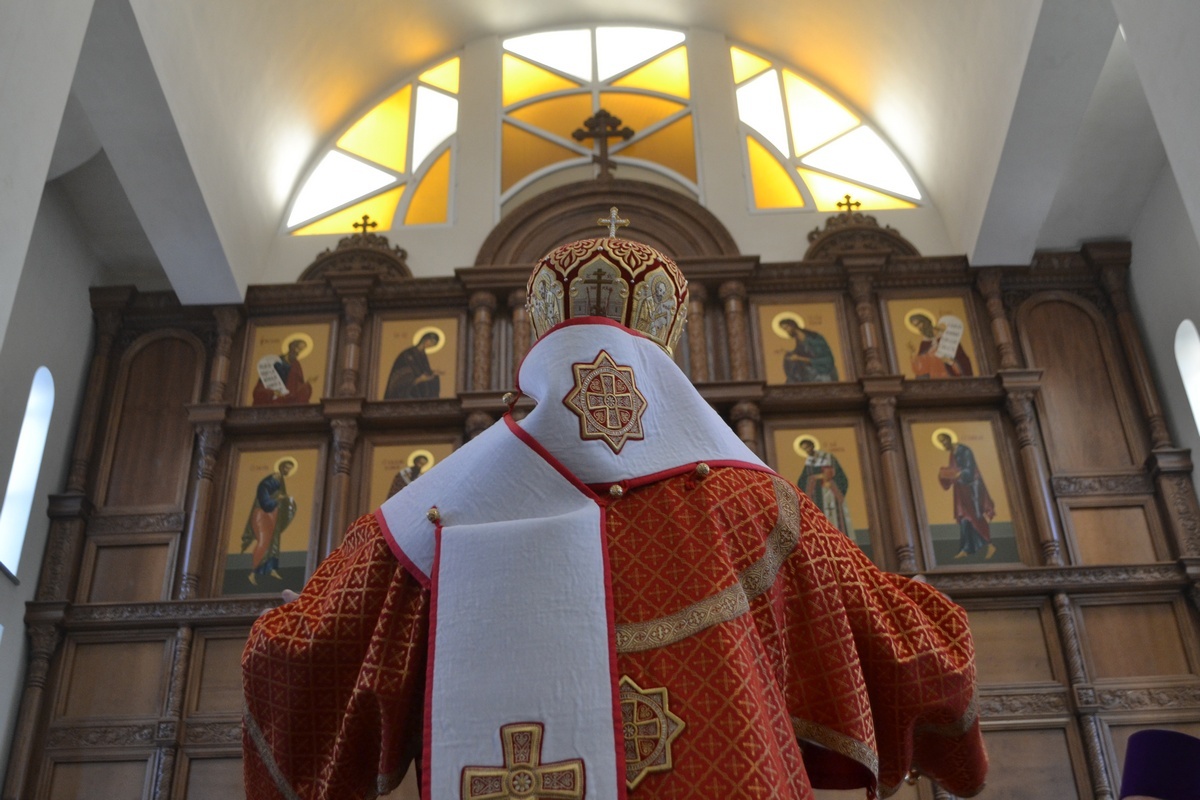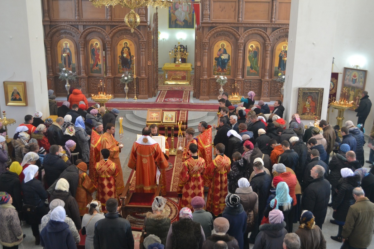 7 февраля 2016 года, В неделю 36-ю по Пятидесятнице, день поминовения собора новомучеников и исповедников Российских, святых царственных мучеников страстотерпцев, и всех в годину лютых гонений за веру Христову пострадавших, епископ Бишкекский и Кыргызстанский Даниил совершил Божественную литургию в храме святого равноапостольного великого князя Владимира.