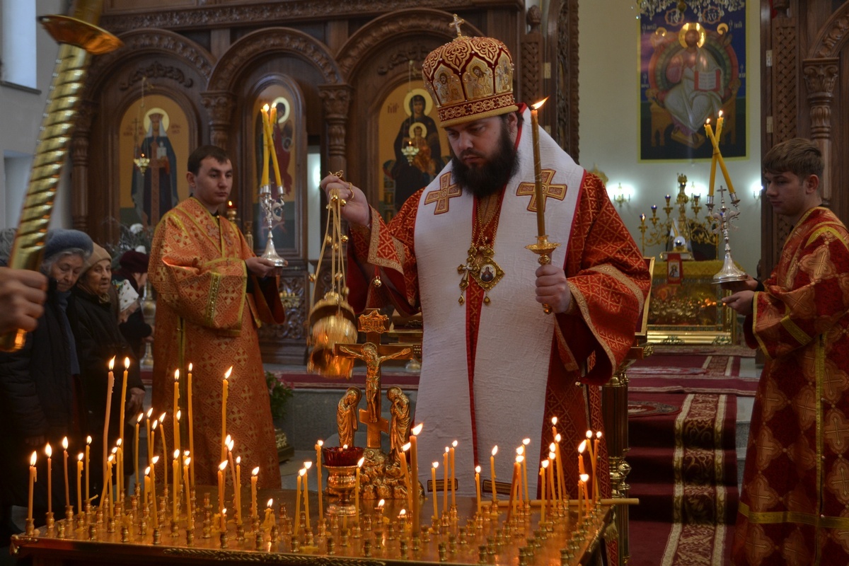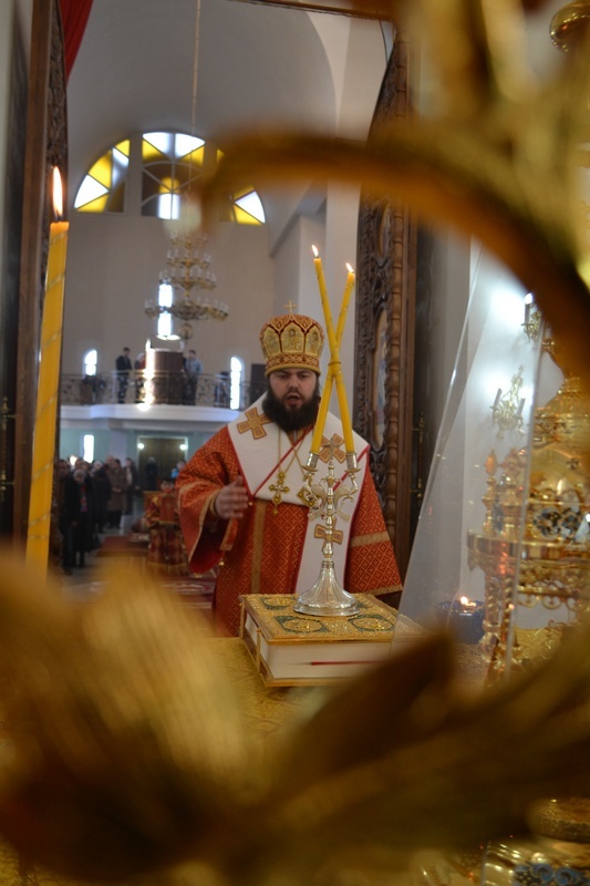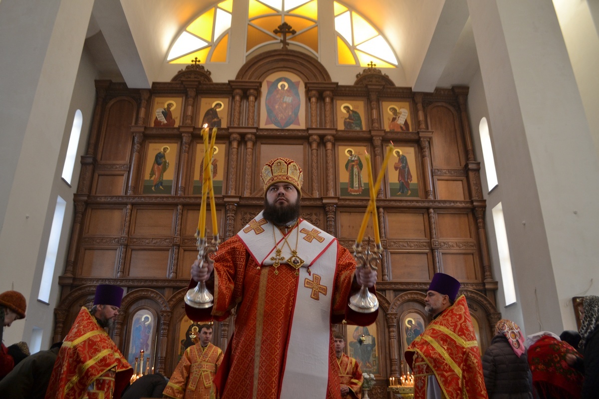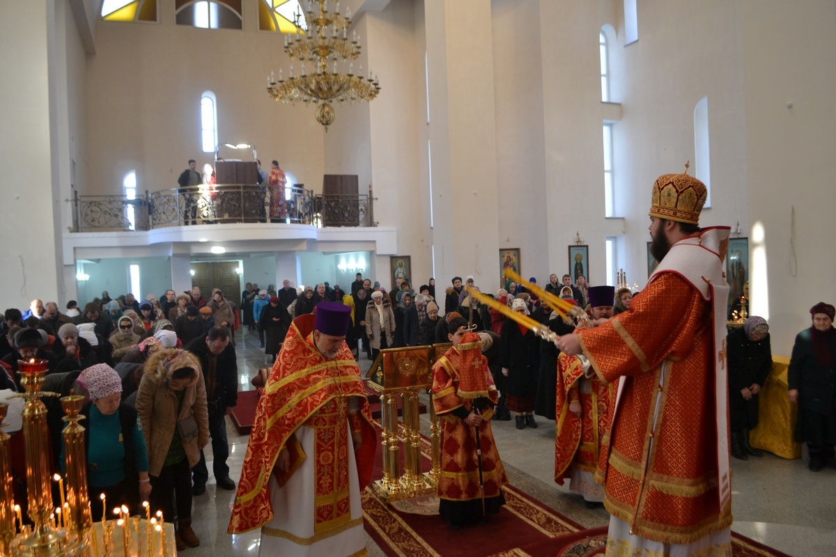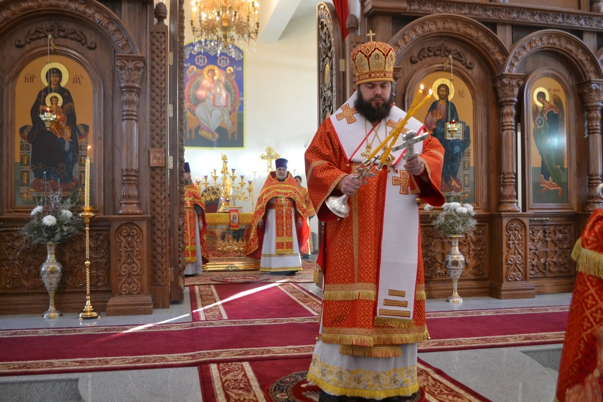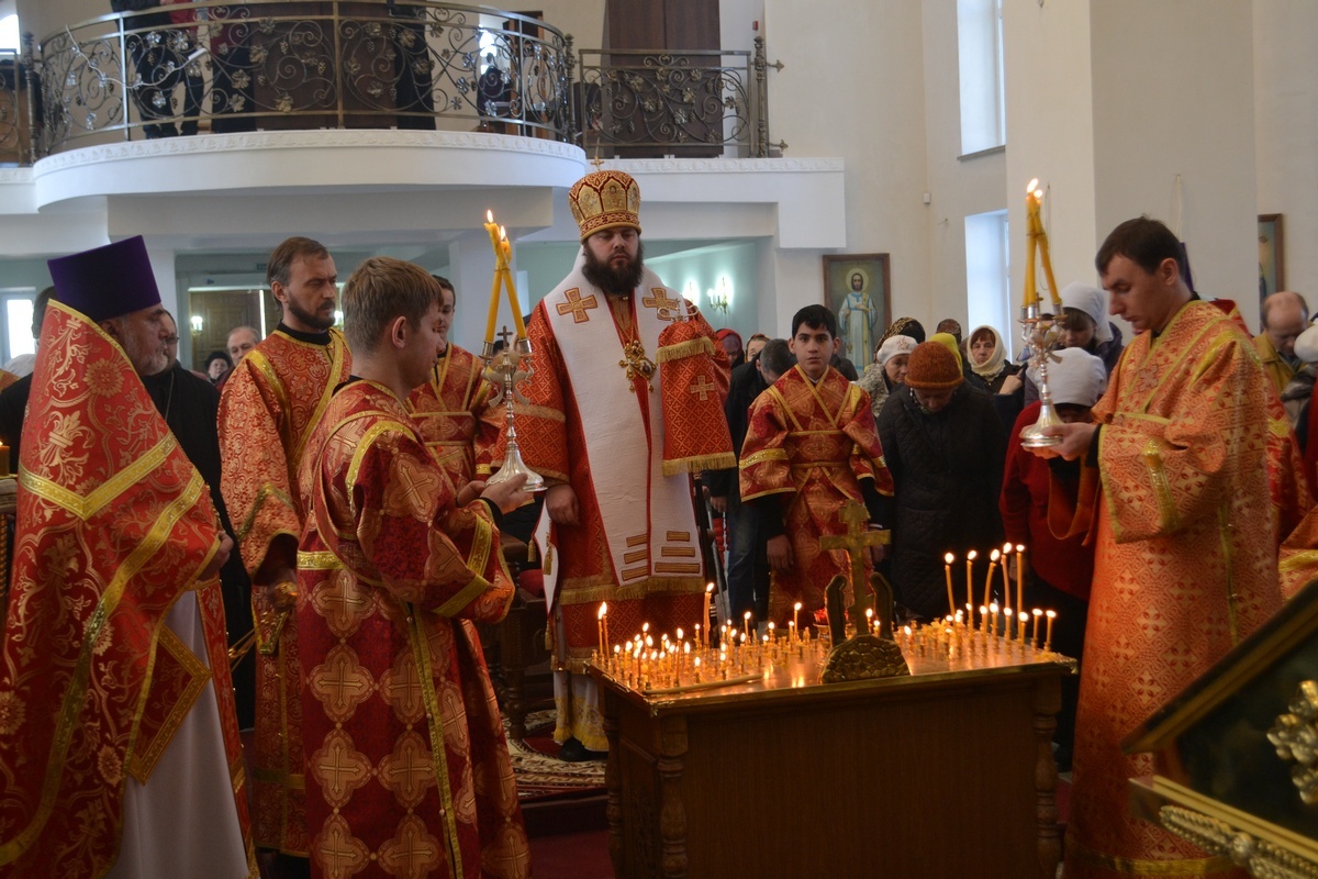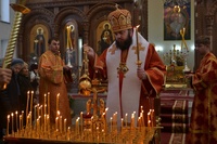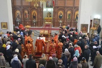 Его Преосвященству сослужили: настоятель Владимирского храма протоиерей Алексий Зайцев, клирик Свято-Воскресенского собора иерей Георгий Дворовой.